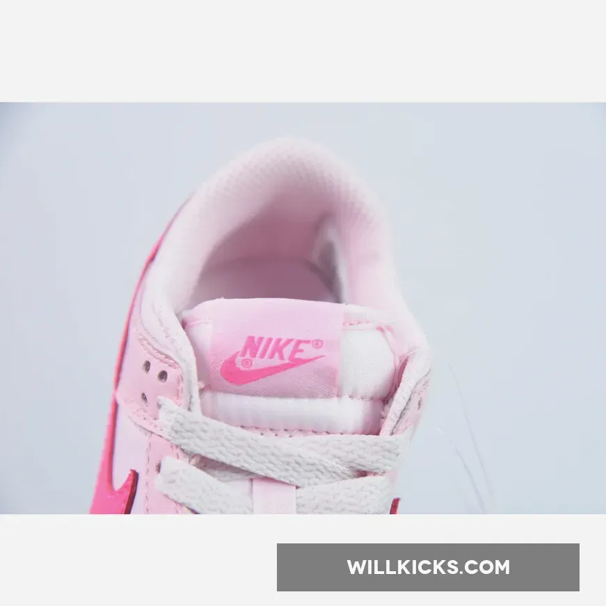 this Nike Dunk Low features light and dark shades of Pink throughout the uppers while constructed with leather. Next, Hyper Pink appears on the Swoosh logos and branding. Other details include more Pink on the midsole and rubber outsole.