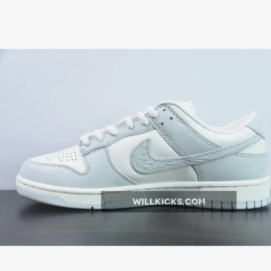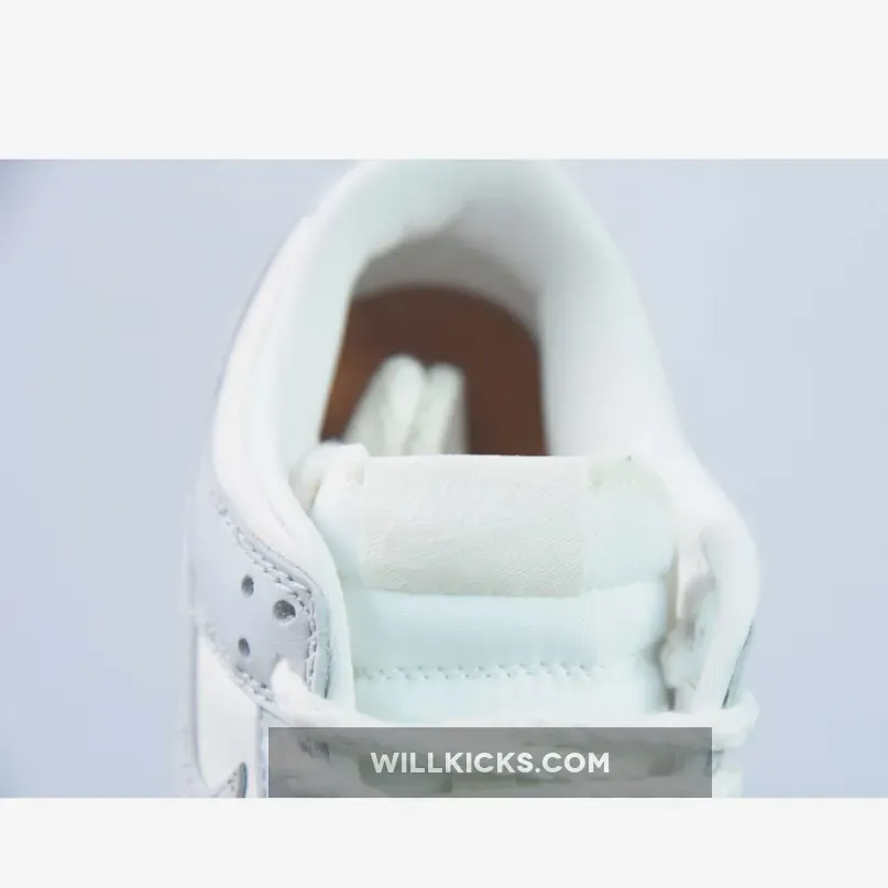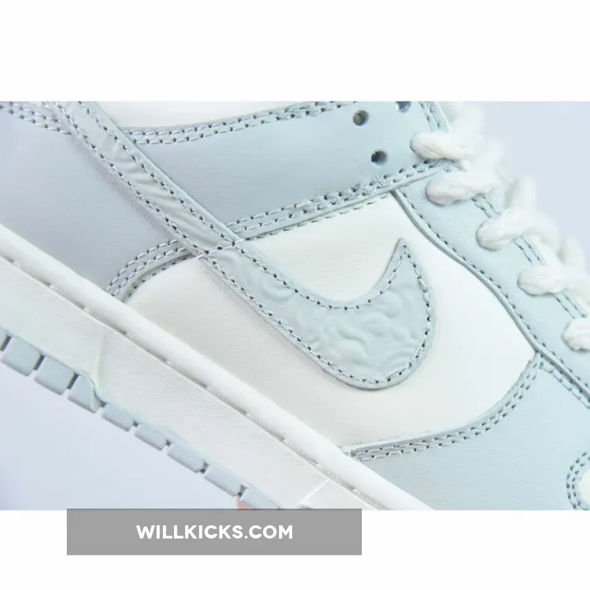 The laces are the most obvious change, with their thick rope profile similar to the set we saw on the Premium Goods x Nike Air Force 1 Low “The Sophia”. Then your eyes drop onto the Swoosh, where a paisley textured finish has been applied to the logo, feeding into the subtle but intricate motif that surrounds the design. On the heel tab, you can find a script Nike font debossed into the panel with a chrome dot applied to the “i”, a detail we first saw on the Air Force 1 Low Chrome Swoosh “Sail” release. Another detail adopted from the AF1 Chrome Swoosh edition is on the toe box, where a decorative pattern replaces the regular perforations that Nike normally issues on the Dunk.