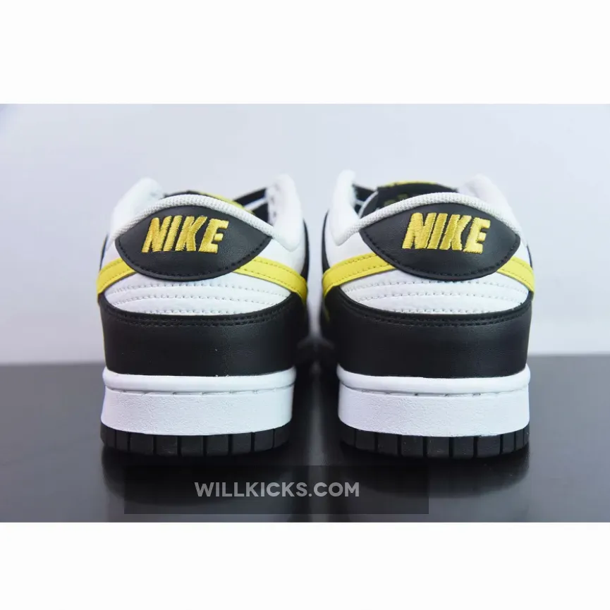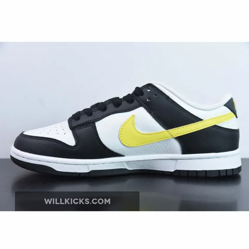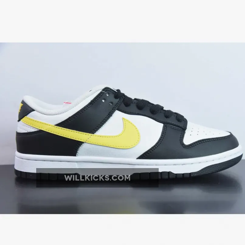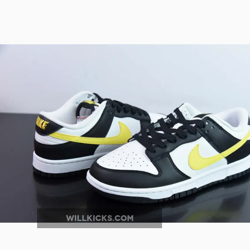 This new offering will be slated for a black and yellow offering that’s a breath of fresh air and White color scheme giving off “Panda” vibes. This offering of the Nike Dunk Low features a White tumbled leather upper with Black smooth leather overlays. Concluding the well-known ensemble with a vibrant finish, bright yellow mid-foot Swooshes, tongue and heel tabs dress the silhouette’s latest clad-leather offering. A white rubber midsole and black outsole complete the brand-new design.