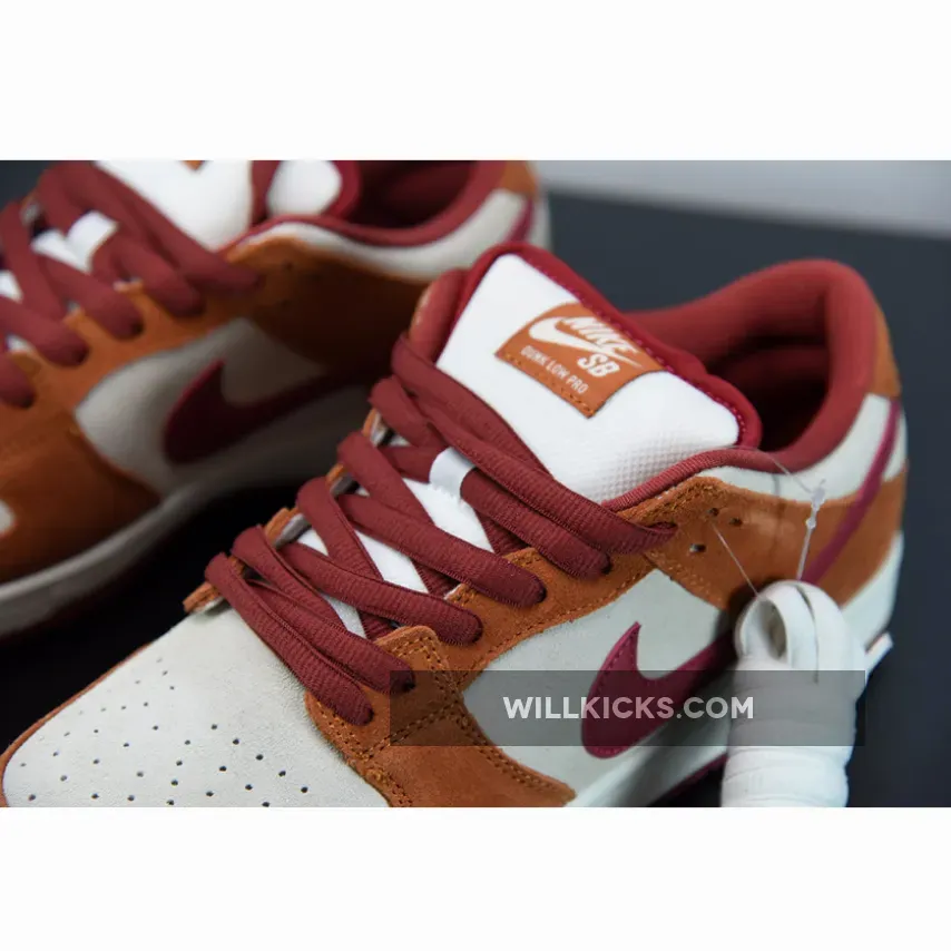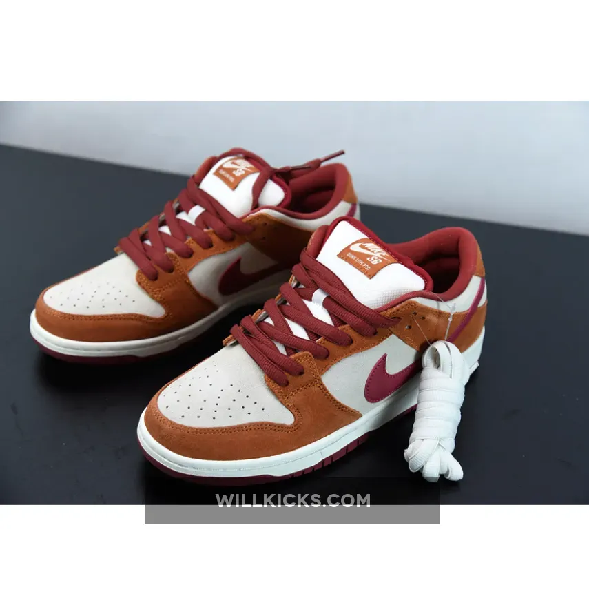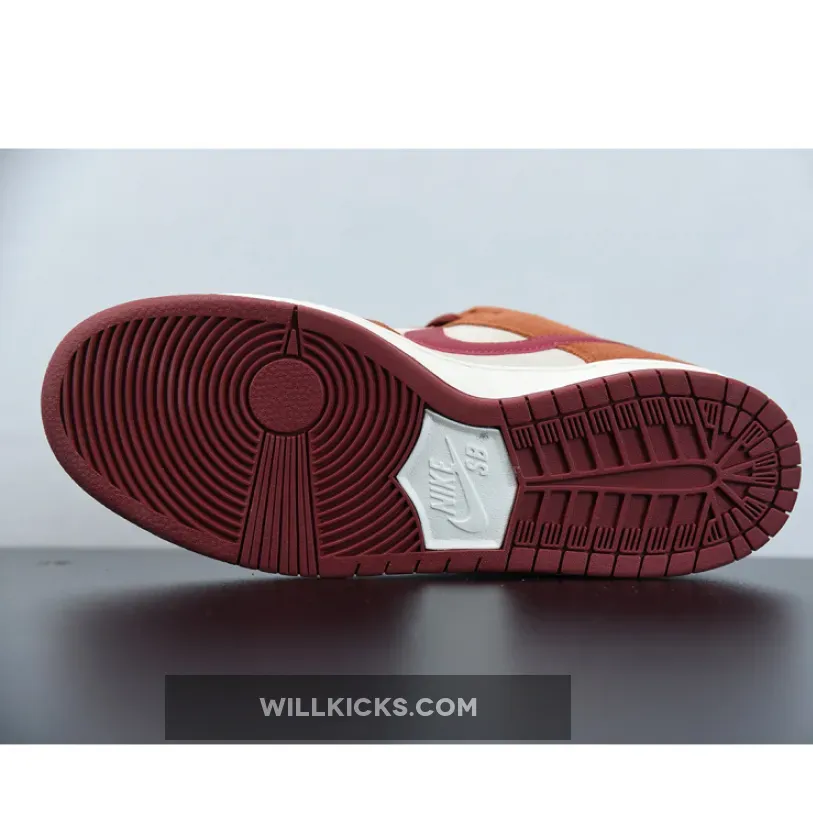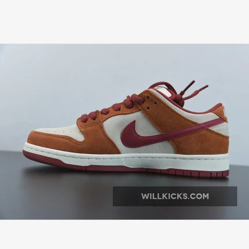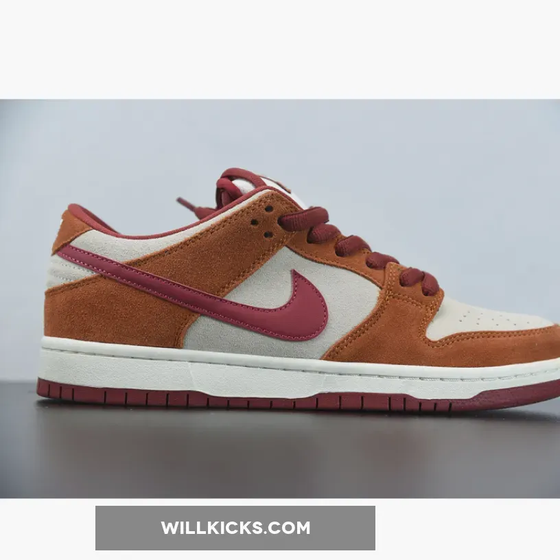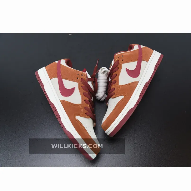 Crafted from a slew of ultra premium materials including smooth suede, luxe leather, and neat nubuck, the Dunk Low Pro Dark Russet is painted in one of the most unique colour schemes the model has ever seen. A clean off-white base contrasts again deep orange panels, while rich red hues hit the laces, sockliner, and the Swoosh logos that shoots across the lateral and medial side panels. “Nike” branding hits the tongue and heel, and to round it all off, classic perforations arrive on the toe box, completing the low cut look that we all know and love.
