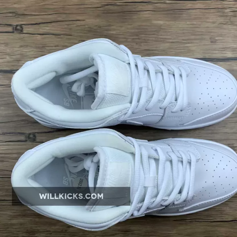 This newest Nike SB Dunk Low Pro is in the former camp, and is right up there with the cleanest SBs ever released thanks to a pristine white leather upper and that iced out bottom that has a similar potential for elegant aging.