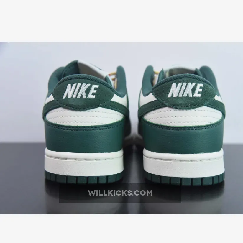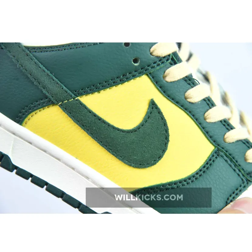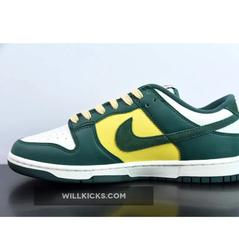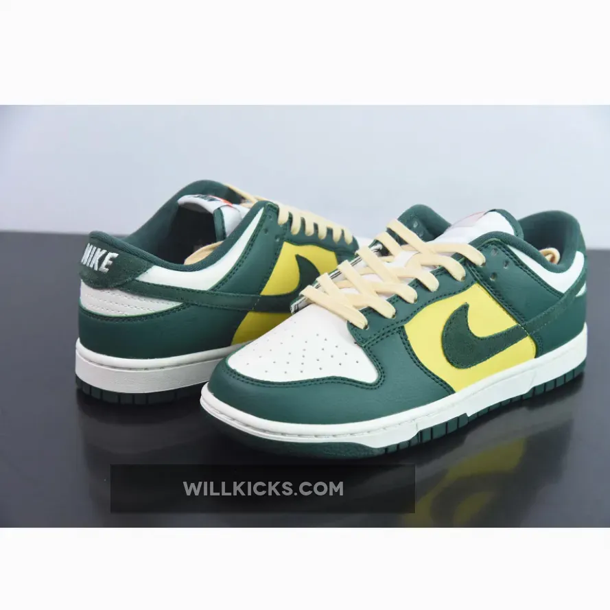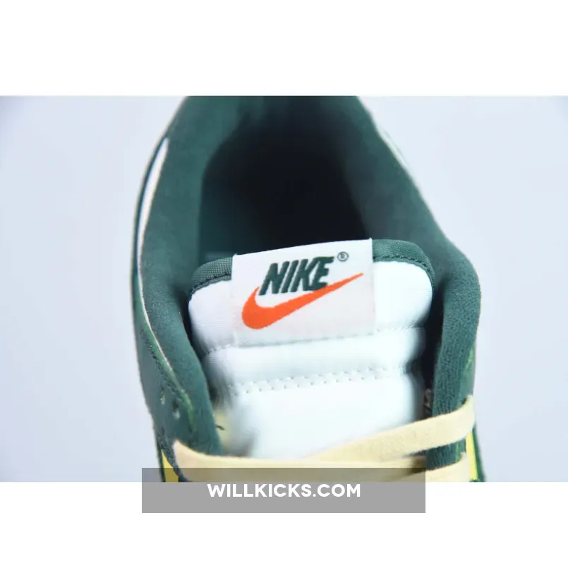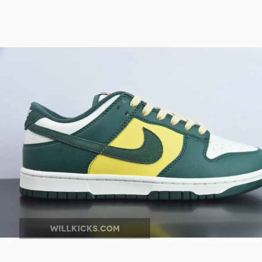This Nike Dunk Low features a Sail, Opti Yellow, Picante Red, and Noble Green color combination. Constructed with tumbled leather and shaggy suede Swoosh logos and heels. Highlighting the pair, we have ‘Athletic Company’ branding on the insoles. Green then lands on the overlays, Sail fills in the tongue, ankle, toe, and midsole, with Yellow on the panels. Finishing the look is a Green rubber outsole.