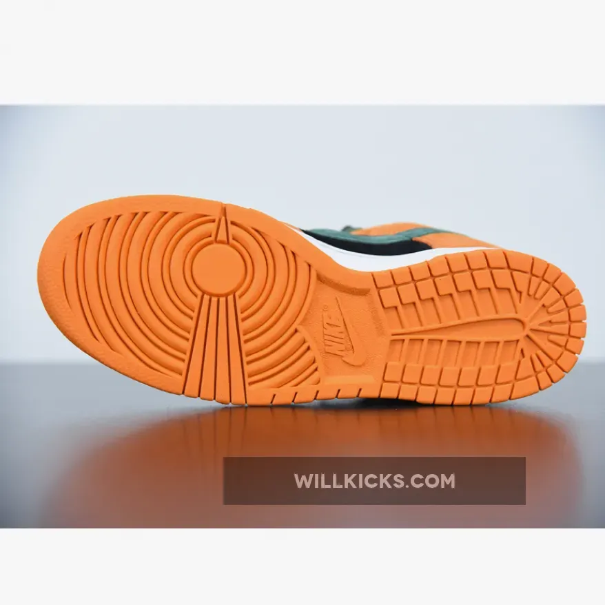 Dressed in a Black, Ceramic, and Nori color scheme. This Nike Dunk Low will stay true to the original, featuring a premium suede upper with a Black base, Orange overlays and Green accents atop a White midsole.