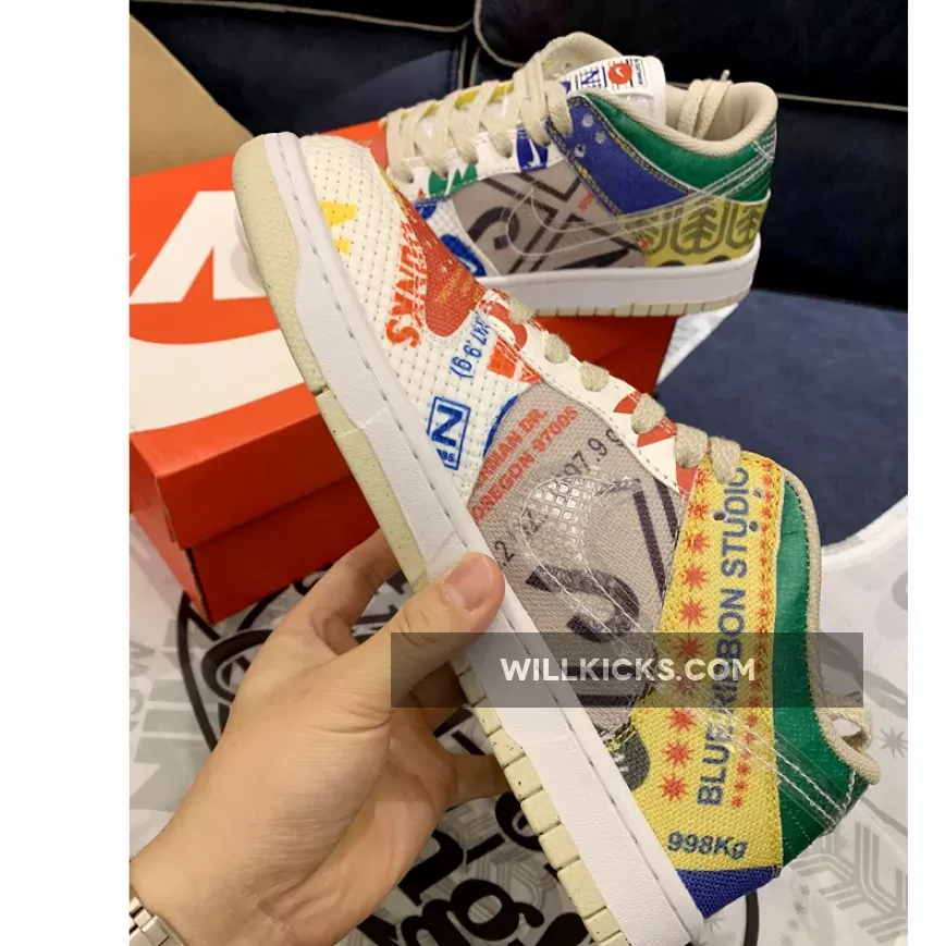 Up next is this new concept dubbed the “City Market”, with each panel of the upper built with different materials and patterns reminiscent of the wares typically seen on street marts filled with local merchants. Exact specs of the shoes, like the weight of a pair of Dunks (2.2 lbs) is also printed on the canvas mid-panel.