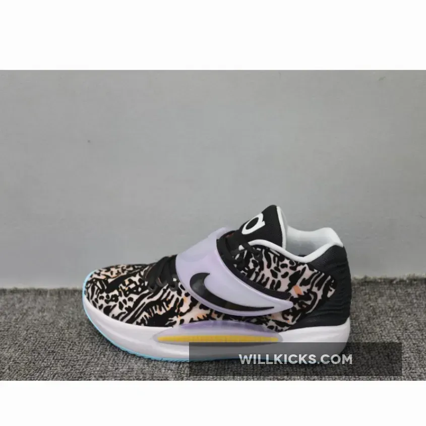The Floral Nike KD 14 revitalizes the distinctive shoe of Kevin Durant with a patterned design on the engineered mesh upper, which incorporates black textile overlays. To secure the midfoot, this shoe features a single adjustable strap reminiscent of the Nike Air Presto, which showcases an elongated Swoosh that pays homage to the Bruins basketball player. The shoe offers lightweight cushioning through a Cushlon midsole and a full-length Zoom Air strobel.