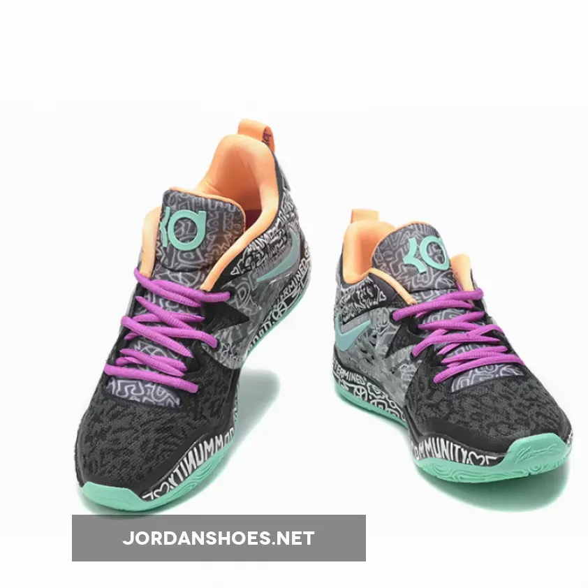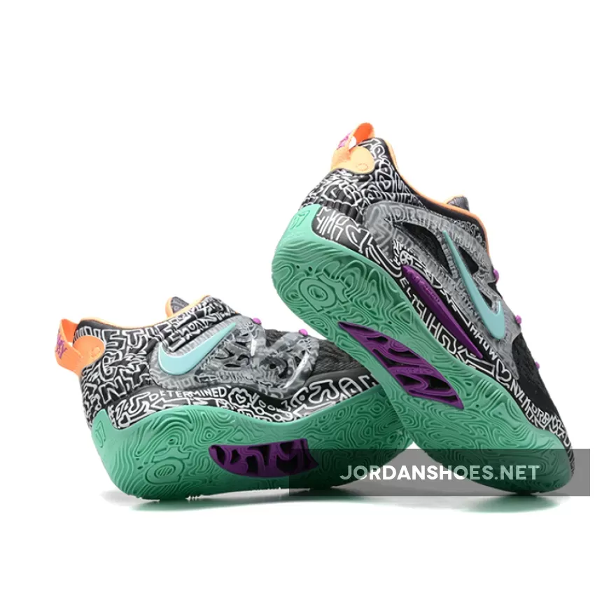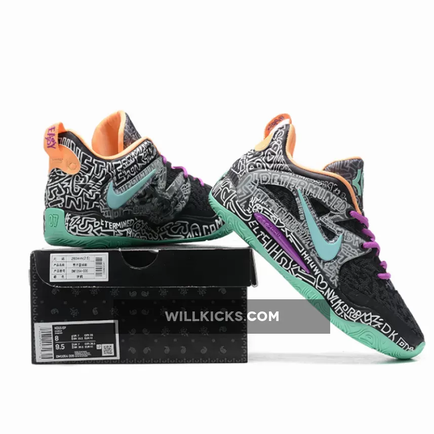 the Nike KD 15 “Brooklyn Graffiti” boasts “Wolf Grey” and “Light Crimson” doodles on the breathable mesh upper, which additionally follows onto the TPU exoskeleton overlays and tongues. Contrasting purple, mint green, and a peachy orange help accent the laces, Swoosh branding, outsole and liner. Lastly, “KD” and his “07” number arrive on the lower heels, while a Zoom Air cushioned sole helps round out the overall design cues.