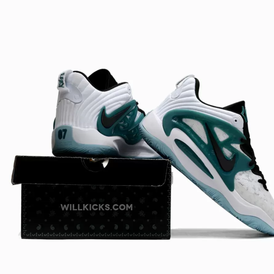 Recurring throughout the KD 5, KD 7, KD 9 and 10, a centralized swatch of teal sets the stage for the next colorway of the two-time Champion’s 15th signature silhouette.