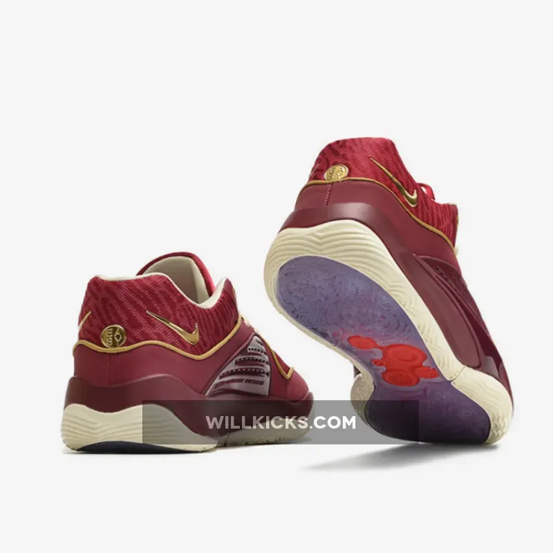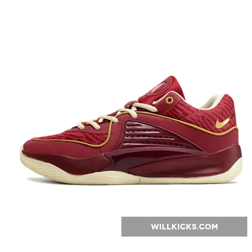 This Nike KD 16 comes with Red across the upper, a tribute to the Big Apple with White detailing and Metallic Gold accents on the Swoosh logos, “NY vs. NY” tongues, and “Easy” logo on the heels.