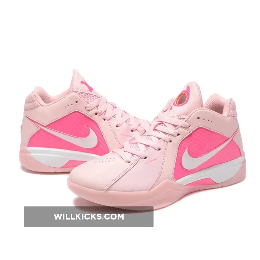 Although no official images have surfaced as of yet, the upcoming Nike KD 3 “Aunt Pearl” will sport the same pink hues as a tribute to NBA All-Star’s aunt who passed away from cancer in 2001. “Medium Soft Pink,” “White” and “Lotus Pink” are believed to dress the pair’s mixed textile construction. Additionally, the pair will most likely be finished off with Durant’s insignia and perhaps the Kay Yow Cancer Fund ribbon.