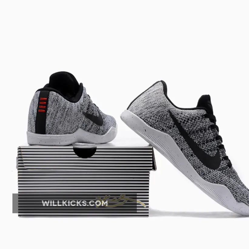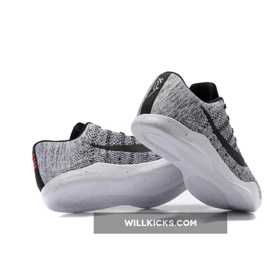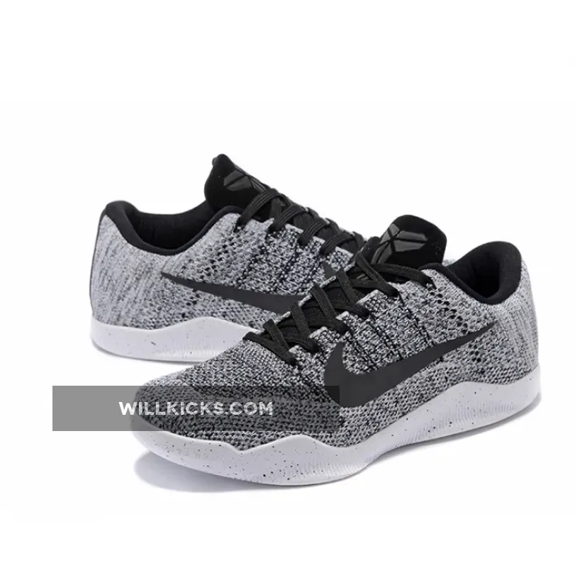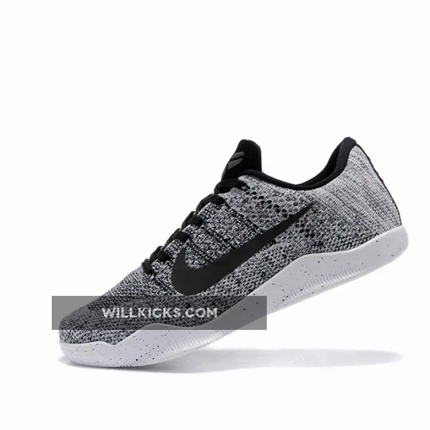 Dressed in the classic White and Black color scheme. This “Oreo” edition of the Nike Kobe 11 features a full Nike Flyknit upper with bold Black detailing on the tongue, lining and Nike Swoosh logos. Speckled detailing on the midsole completes the look and theme.