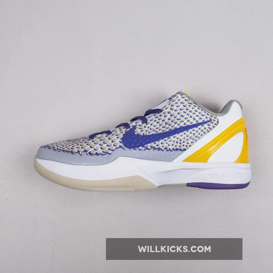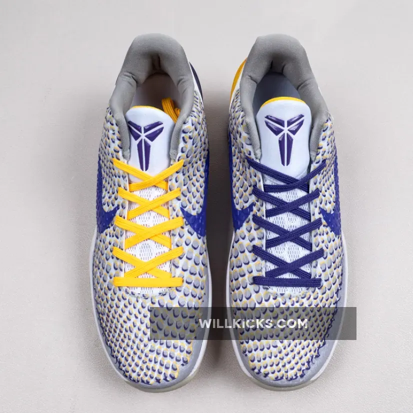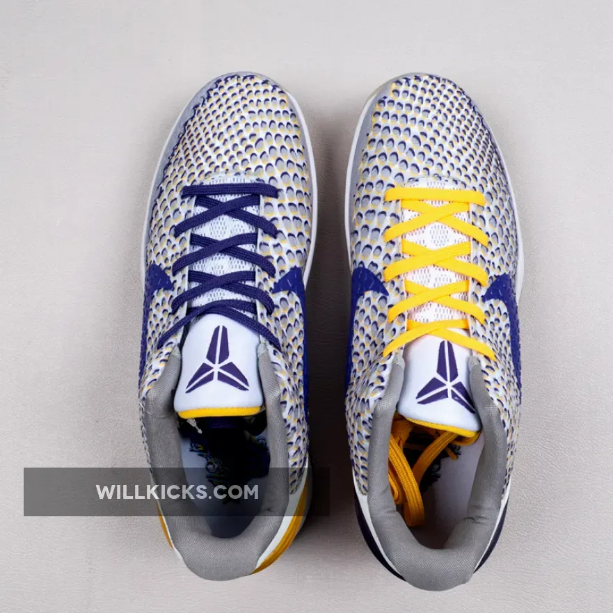 The name of style references the lenticular effect created from the shoe’s scaly upper while purple and gold accents pay homage to the Los Angeles Lakers’ team colors.