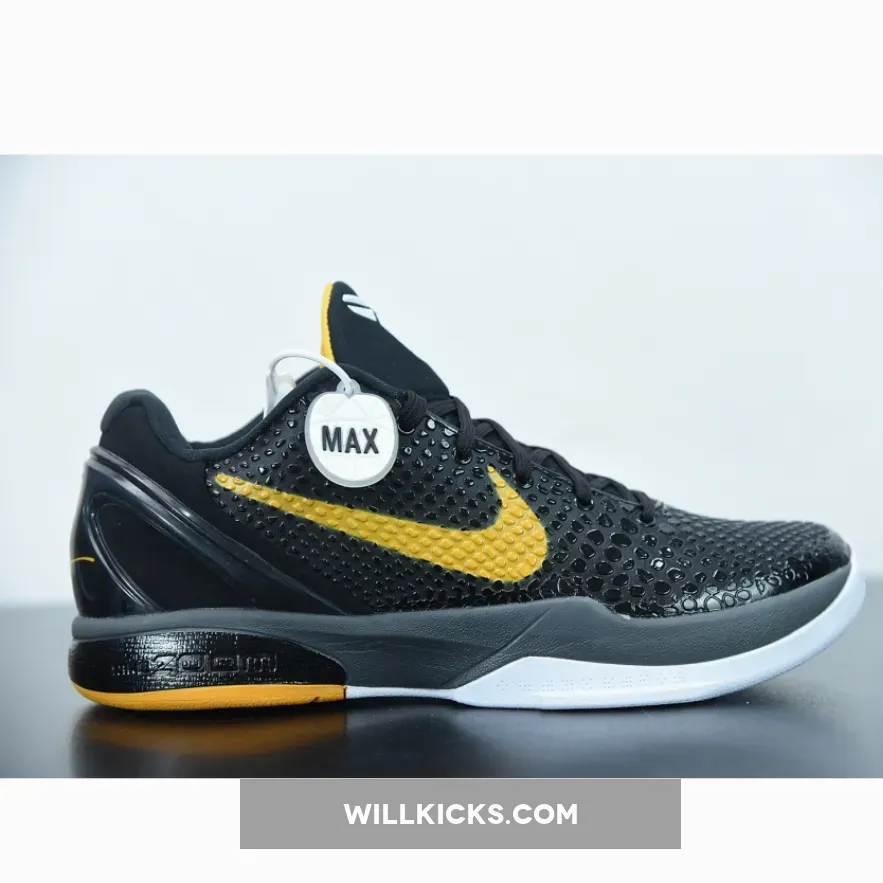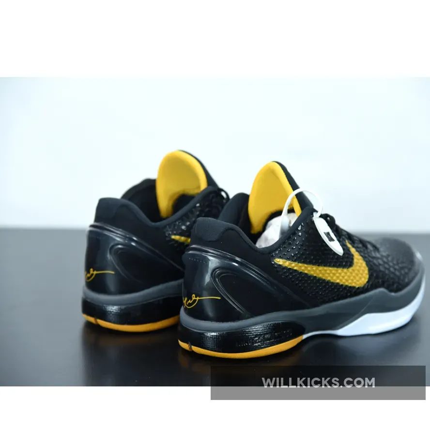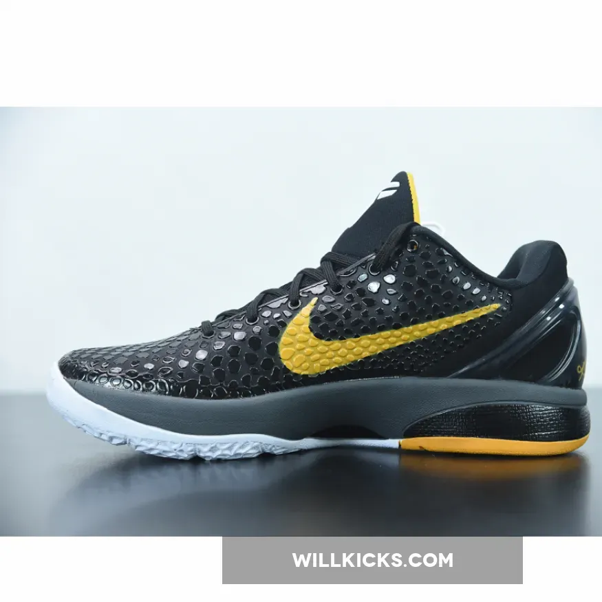Dressed in a Black, Dark Grey, White, and Del Sol color scheme. No leaked photos have surfaced, but this Nike Kobe 6 Protro is expected to look like the original with a Black-based upper, Yellow Swooshes and White appearing on the sole.