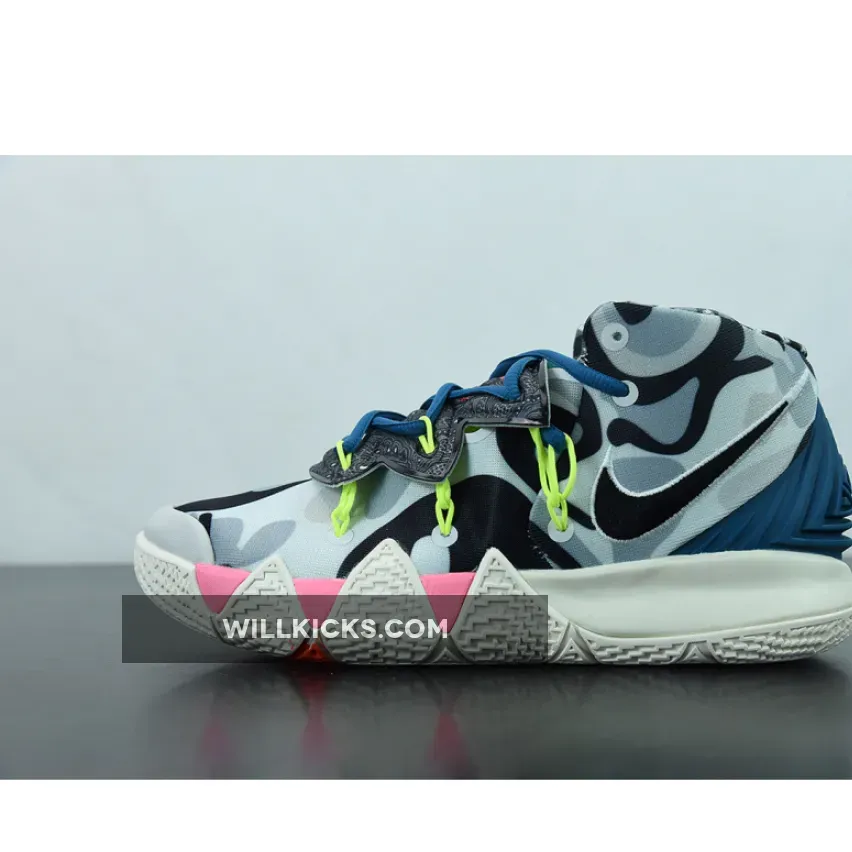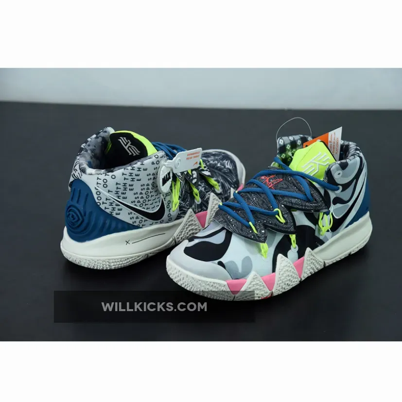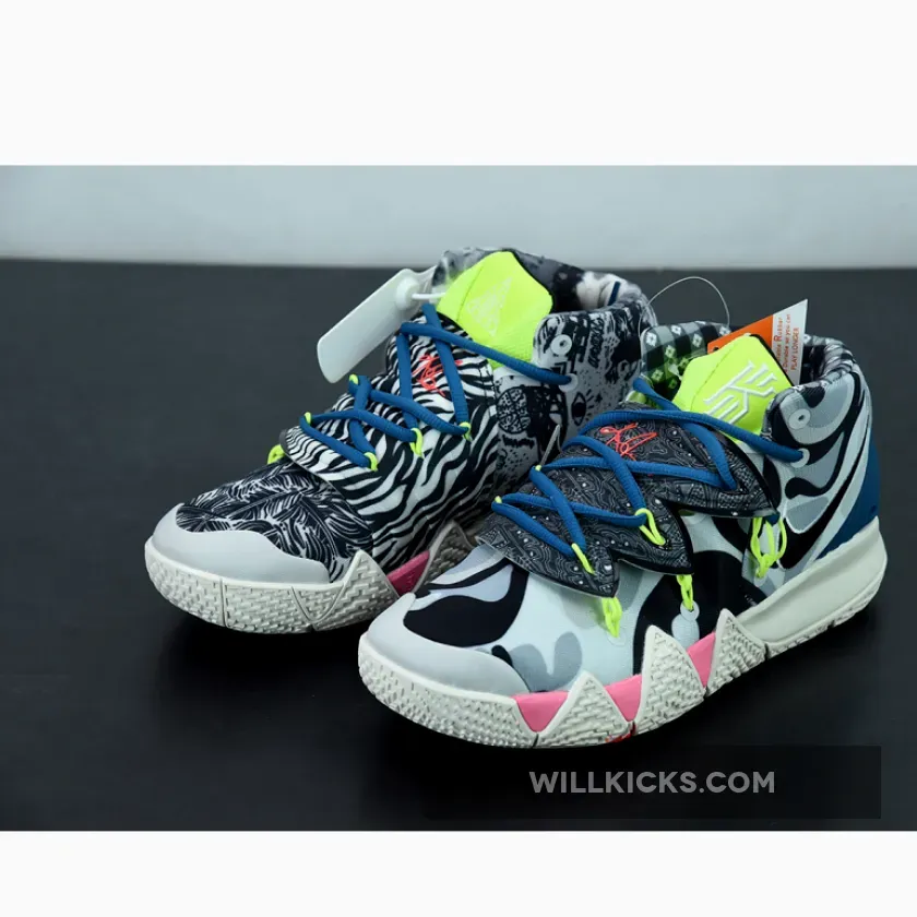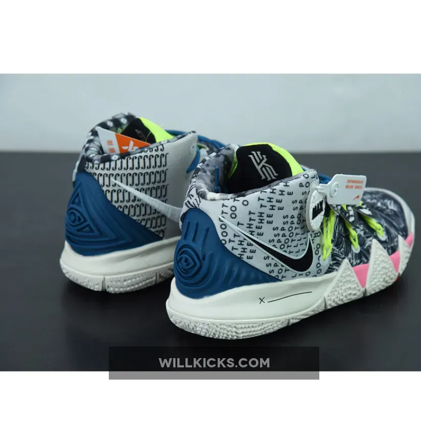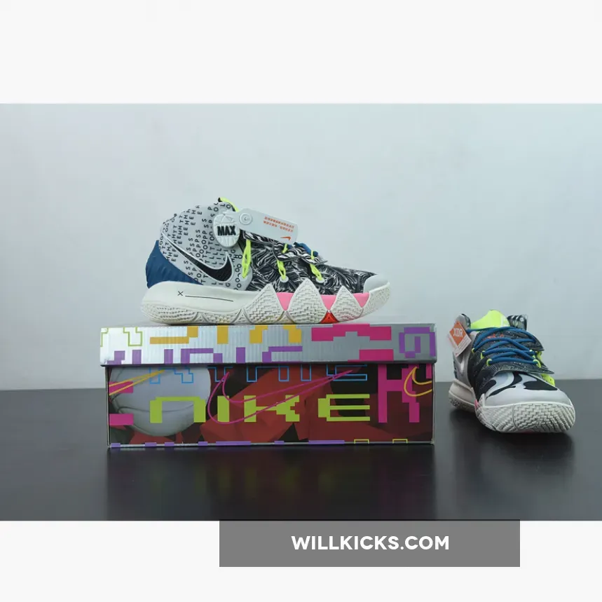 As mentioned, the ‘What The’ theme for this model is brought to us by previous Kyrie models which includes the 4, 5 and 6. Looking closer at this particular pair, it features Black, White and Grey throughout. Highlighting this pair is the use of various patterns which gives each shoe a unique look. Other details includes Neon accents, branding on the tongues while Sail covers the midsole and rubber outsole.