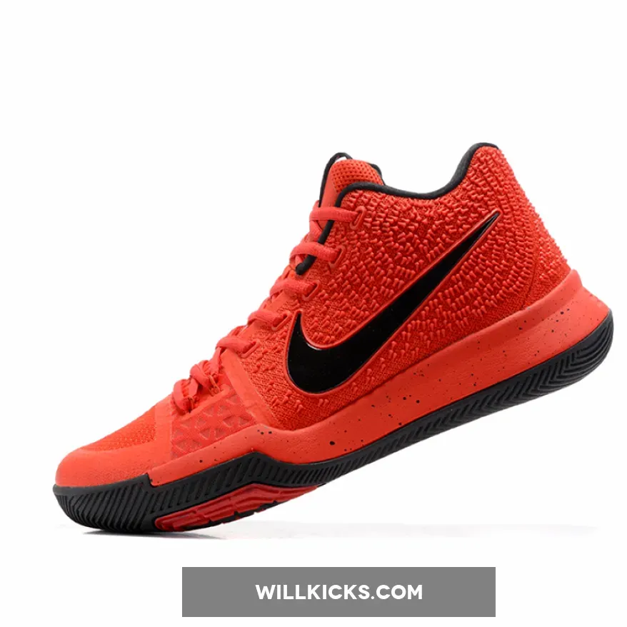 The basketball sneaker sports a classic “BRED” colorway that is definitely a crowd favorite. This Nike Kyrie 3 features Red-based upper with matching laces and Flywire cables. Black detailing is seen on the Nike Swoosh, liner, speckled midsole and outsole.
