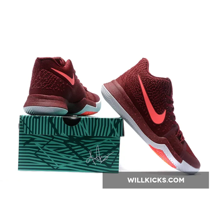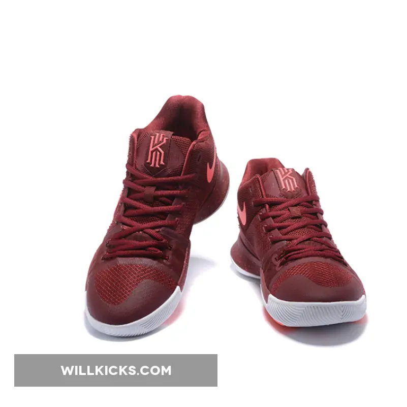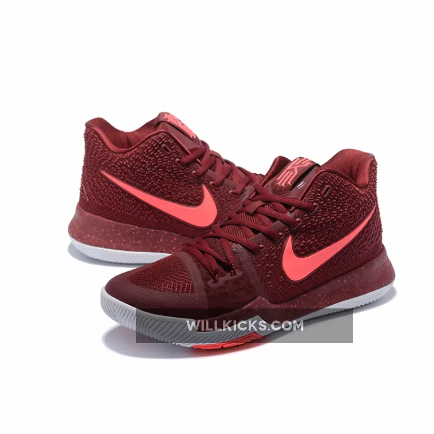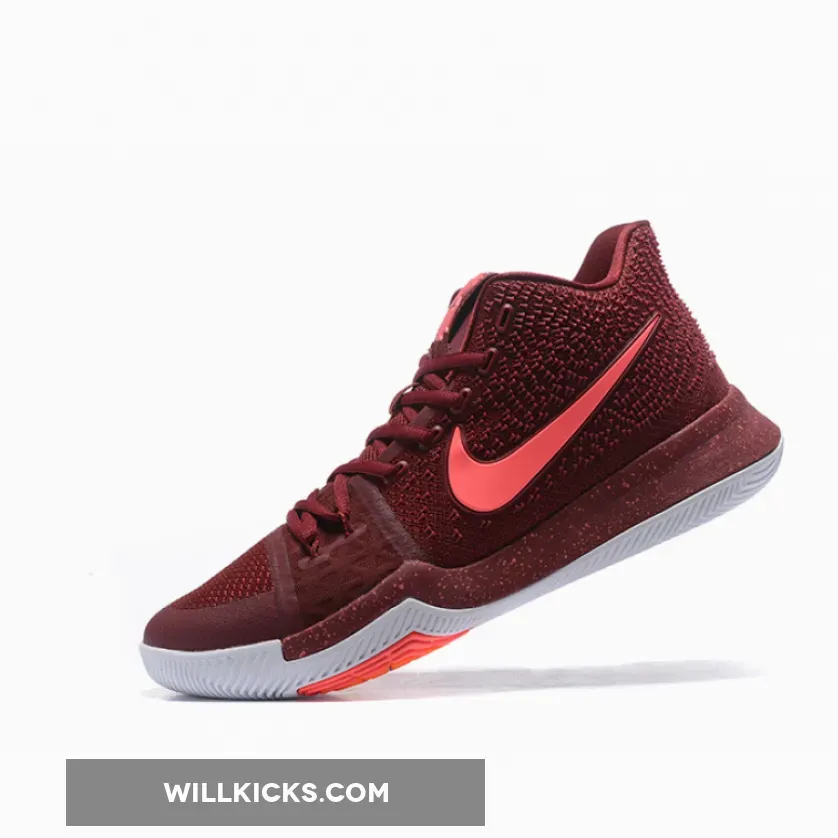 This Nike Kyrie 3 Covered in Team Red throughout the majority of the upper, this colorway of the Kyrie 3 is contrasted by hits of Hot Punch (pink) on the Swoosh logos on the medial and lateral side panels, as well as on the subtle speckling on the midsole. Across the uppers we have Red which is paired with Flywire that offers flexible lockdown. Other details include traction pods, integrated forefoot band, outsole curvature and Zoom Air.
