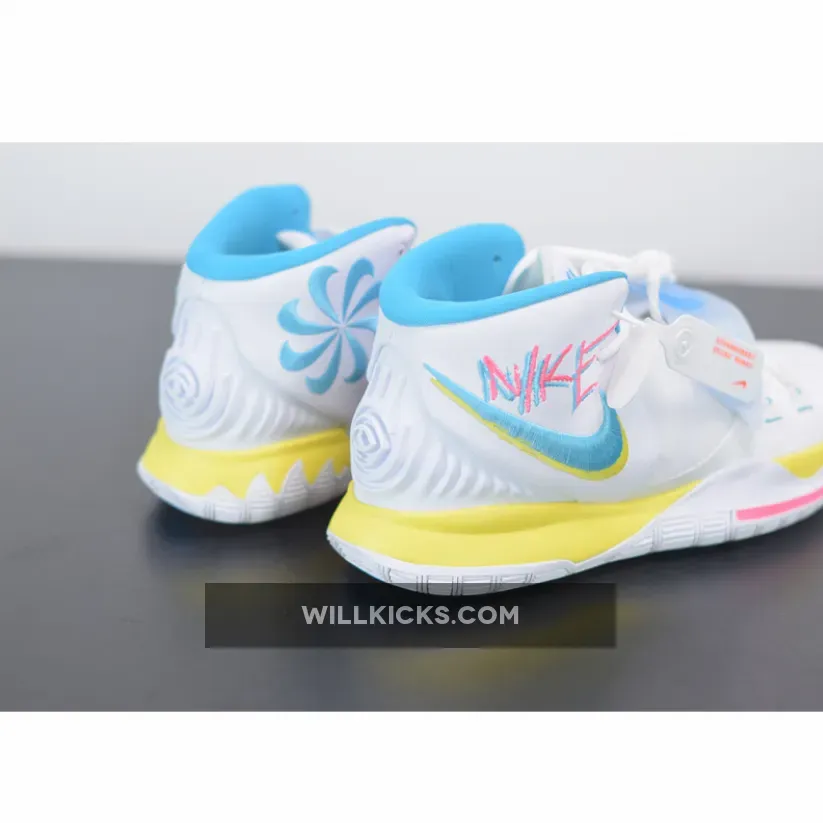 While clad in various shades of purple, in particular across the camouflage-patterned forefoot, this Kyrie 6‘s (arguably) most striking details require closer inspection. Midfoot lockdown straps’ medial sides feature “Infrared”-like “ASIA” text, which also appears on right shoes’ tongues. Right below, the pair boasts a spin on a classic Nike slogan: “ENGINEERED TO THE EXACT SPECIFICATIONS OF ASIA IRVING.” Left shoes further nod to Irving’s once-stylist with their “A”-stamped insoles. Elsewhere, the multi-colored Kyrie 6 features stacked lateral Swooshes, miniature heart outlines, and “YEAR OF THE WOMAN” text visible through the model’s signature heel counter.