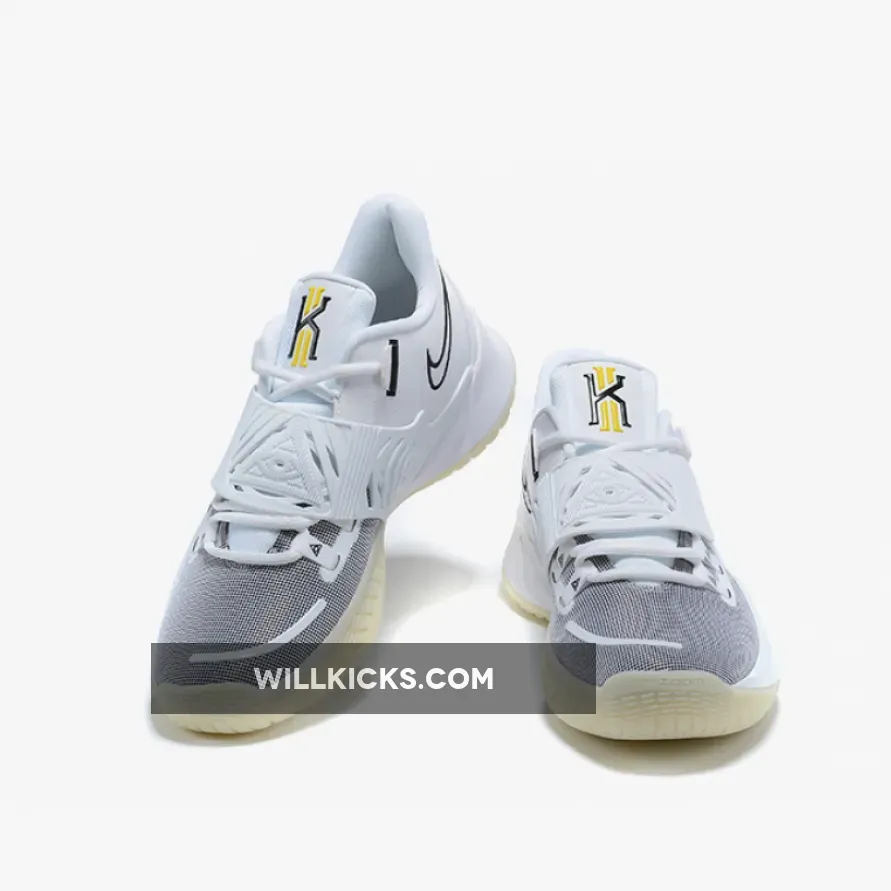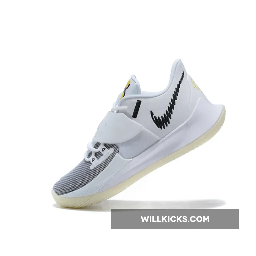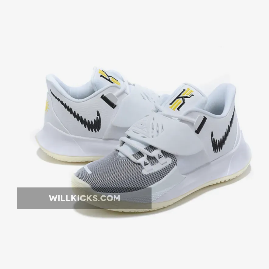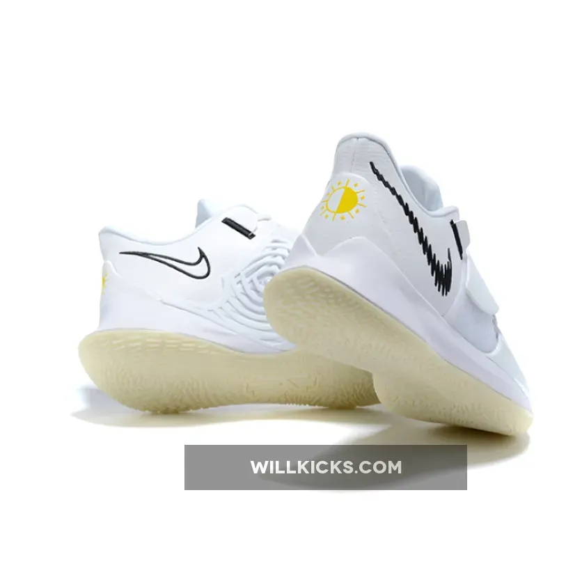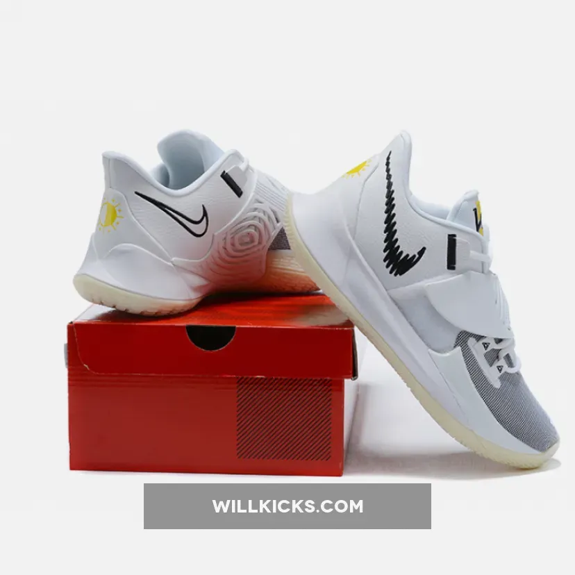 This offering of the Kyrie Low 3 features a clean White leather upper paired with Black detailing and branding. The heels comes with symbols of the sun, while the “KI” logo on the tongue is done in hits of Yellow. A glow-in-the-dark outsole completes the design.