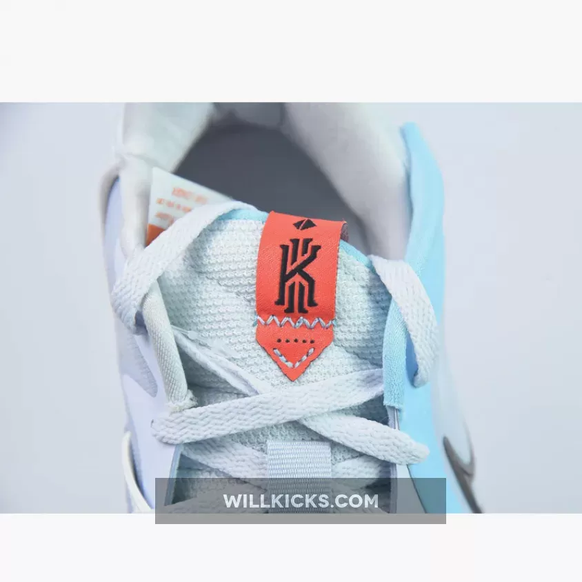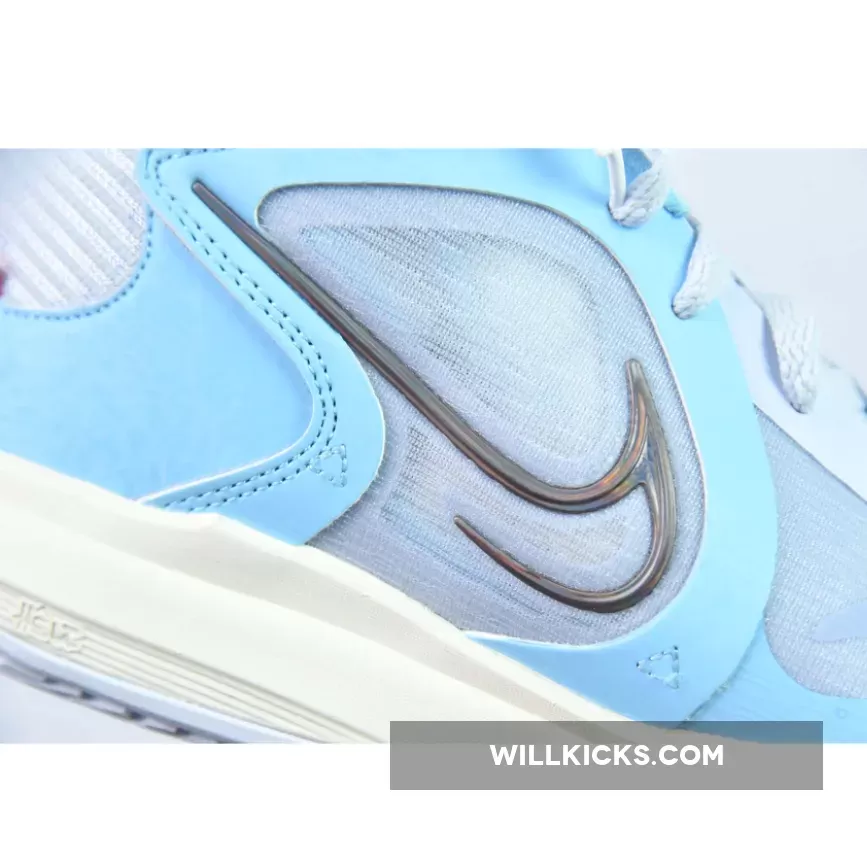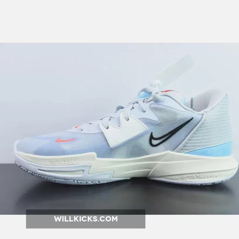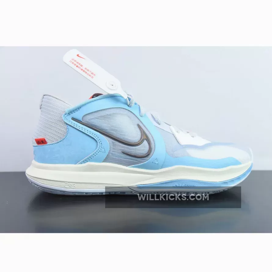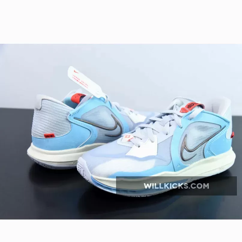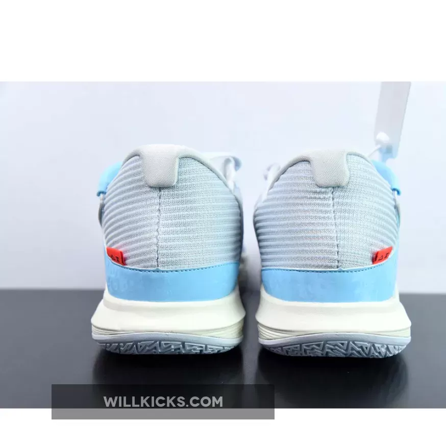 Look stylish in and out of the game with the Nike Kyrie 5 Low Nets Grey Blue. This pair boasts a fashionable colourway patterned after the Brooklyn Nets City Edition jerseys. The lightweight textile upper is dressed in tonal grey and complemented with sky blue accents. A creative multicoloured metallic take on the Swoosh and hints of white leather complete the eye-catching design.