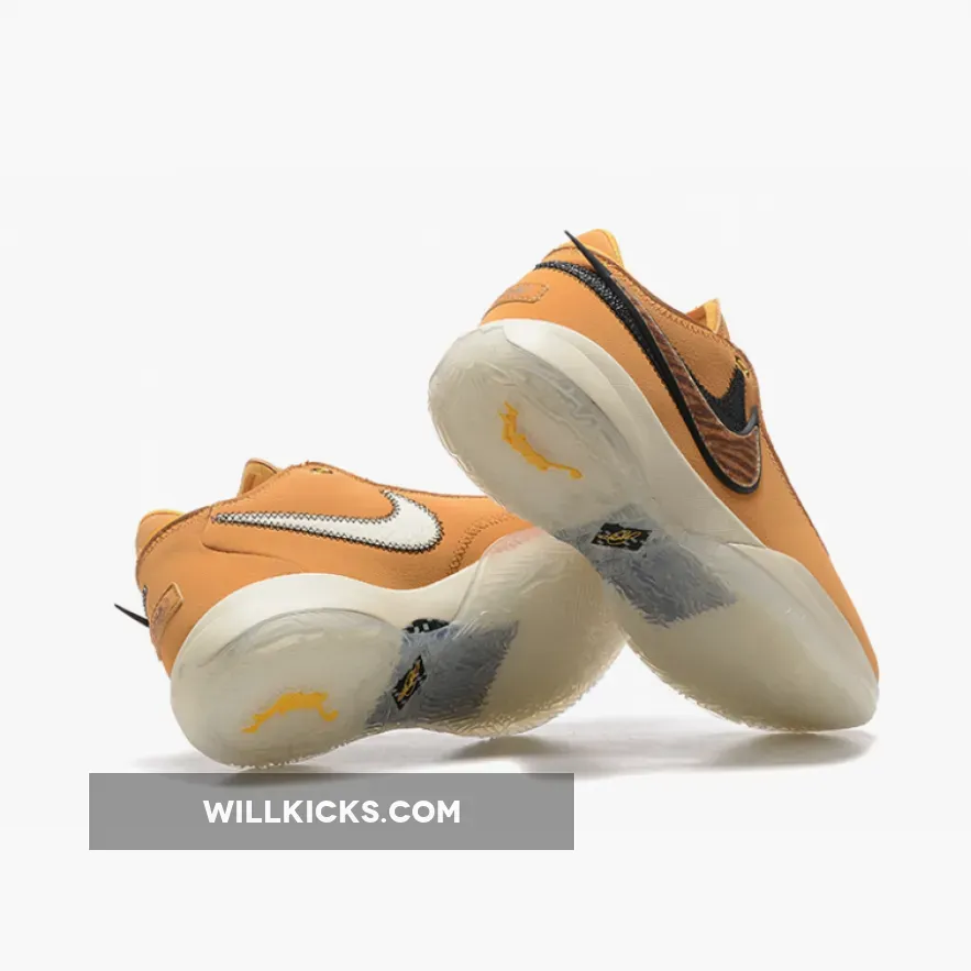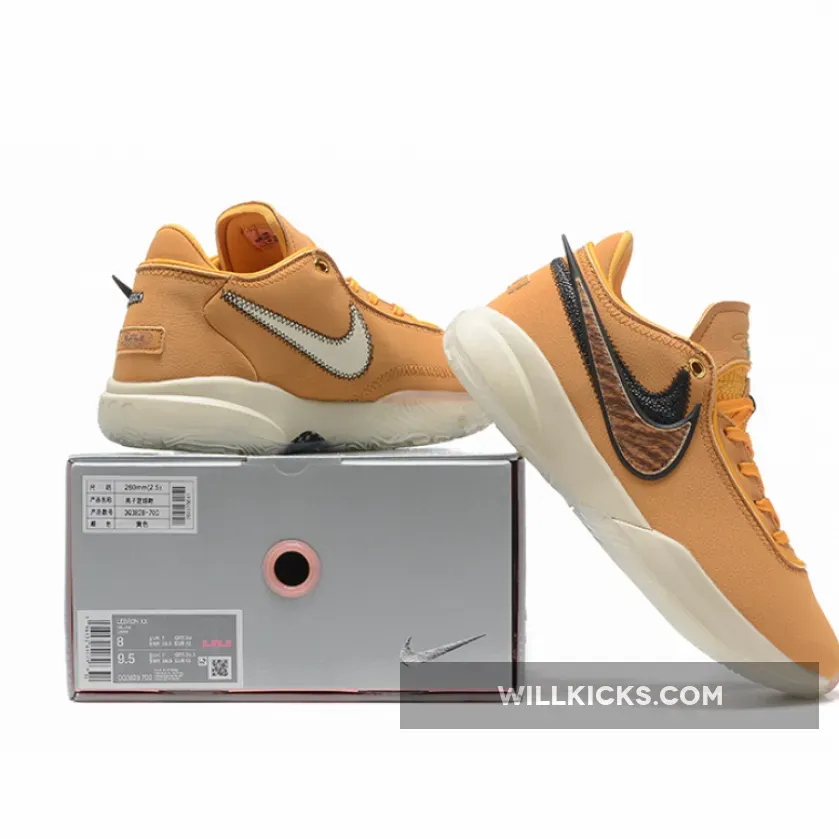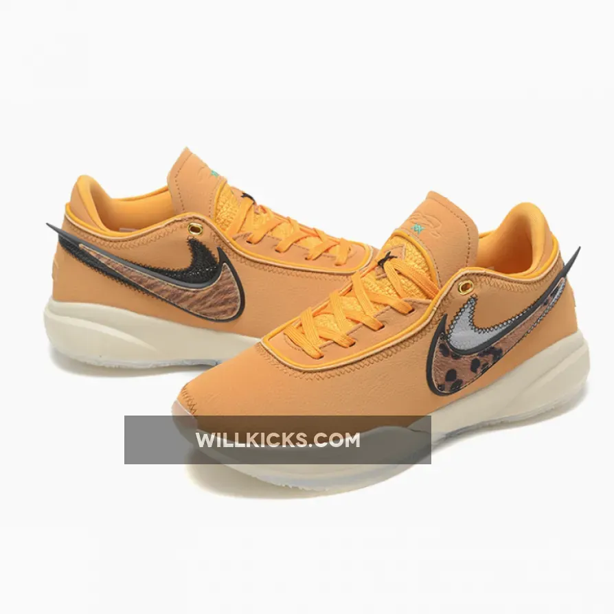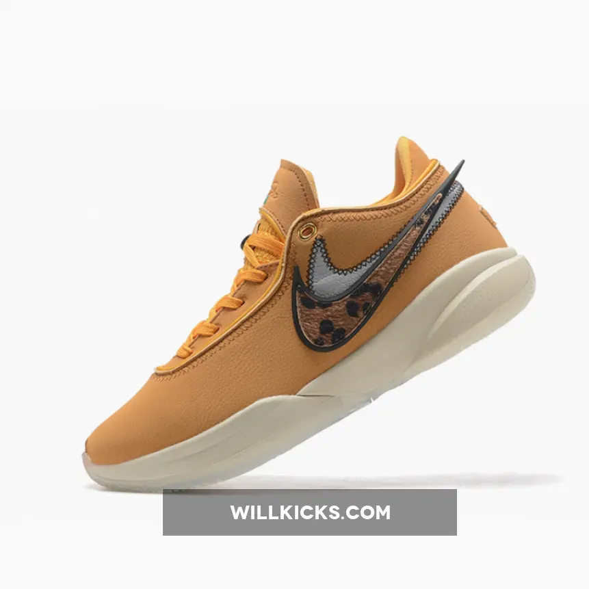 this offering of the Nike LeBron 20 ditches it’s knitted upper for tumbled leather build detailed with faux fur animal print on the lateral double-stacked Swooshes. More branding elements lay claim on the tongue where the King’s signature’s debossed, while atop sits the “XX” stitching. The insignia also seen on the metal lace dubraes near the vamp.