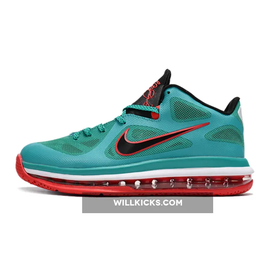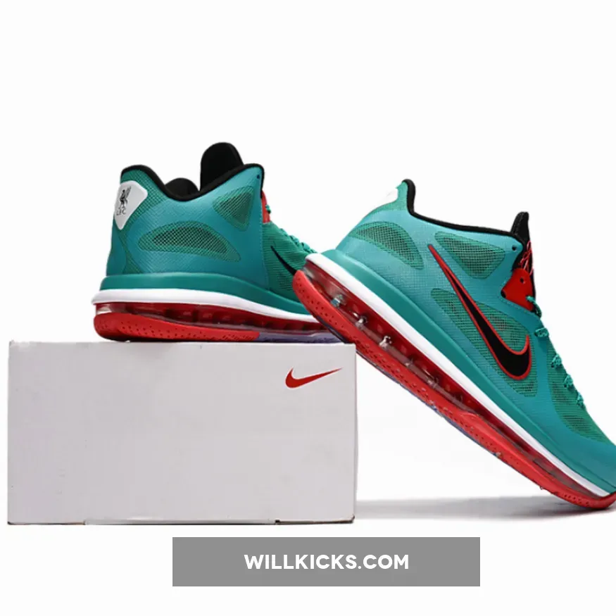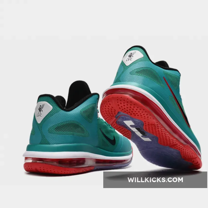 The 11-year-old Jason Petrie-designed Nike Lebron 9 is bringing back an OG colourway from 2012 but has flipped the contrasting tones. Take a closer look at the Nike Lebron 9 Reverse Liverpool. This Lebron 9 is dressed in a teal-hued Green on most of its mesh base. Black makes an appearance on the mesh tongue, sock liner and the signature profile TPU Swooshes on the medial and lateral sides of the shoe. Official Liverpool logos stand out on the heels and the outsole.