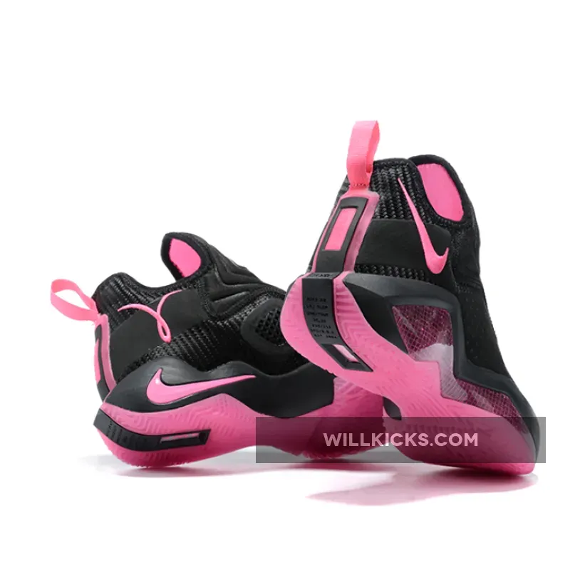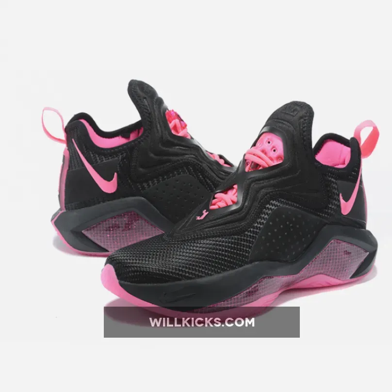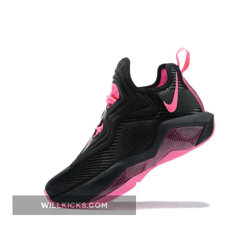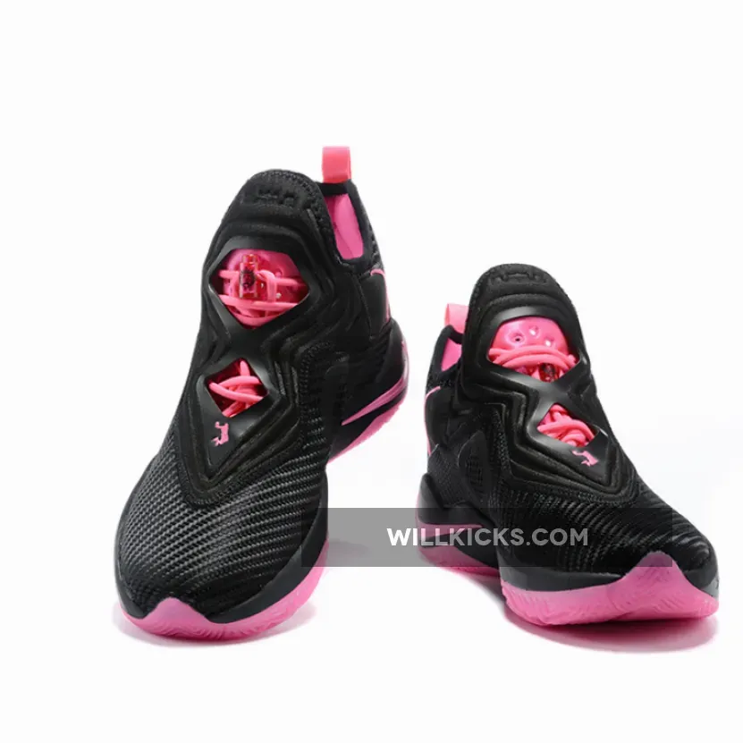Unlike the LeBron Soldier 13‘s cancer awareness-iteration, its successor’s tribute is predominantly clad in black. Woven uppers are complemented with pink: profile Swooshes, spines, heel pull tabs, inner lining, laces and their toggles, tongue branding, and medial heel embroidered ribbons. Elsewhere, Kay Yow’s “When life kicks you, let it kick you forward” quote is printed on the sockliner.