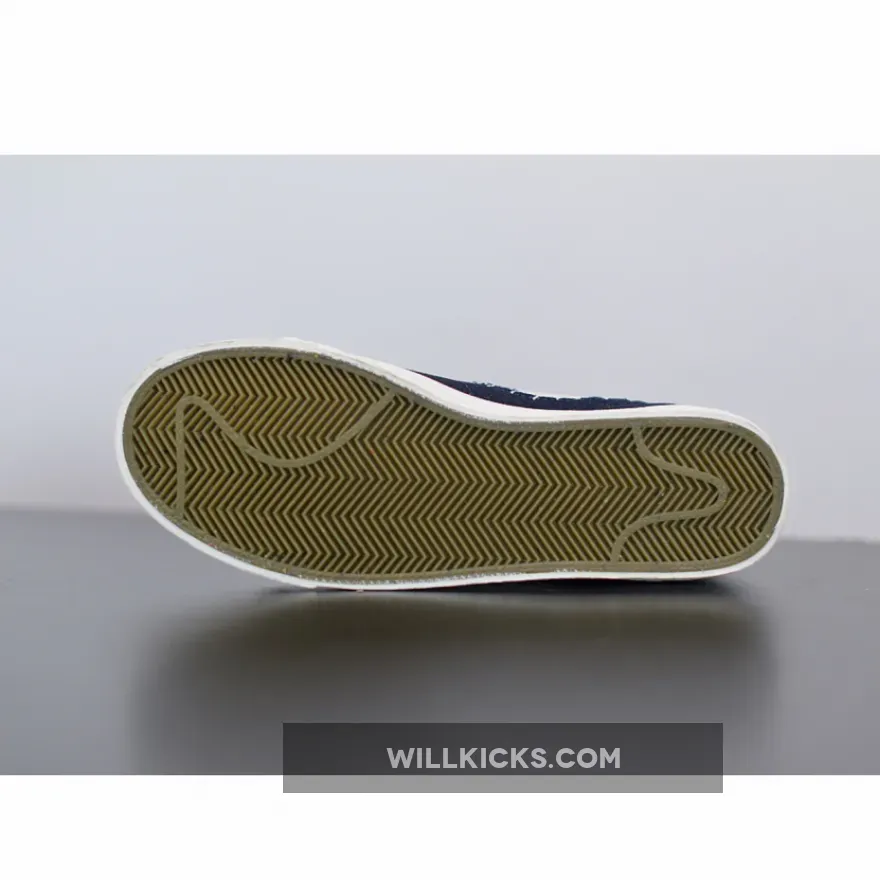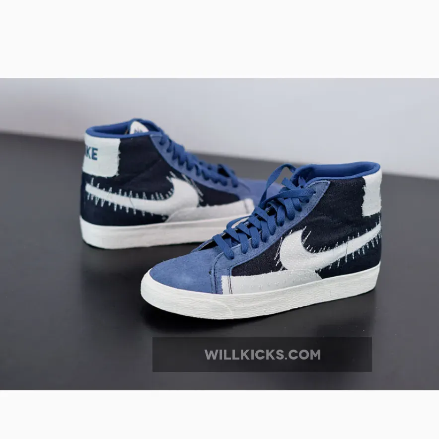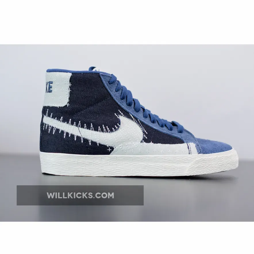 Sashiko, which literally translates to “little stabs,” is a form of decorative reinforcement stitching that originated in Japan around 400 years ago. This offering of the Nike SB Blazer Mid features a Navy base with Sail DIY-style paneling covered in Sashiko-style stitching. A Sail midsole atop a Gum rubber outsole completes the design.