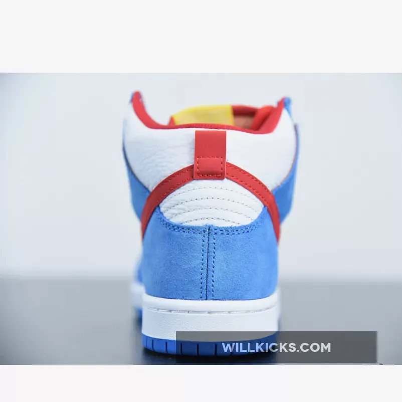 Dressed in a Light Photo Blue, Speed Yellow, and University Red color scheme. This offering of the SB Dunk High comes dressed in Doraemon’s color blocking. It features a White leather base with Blue suede overlays paired with a Red Swoosh and matching laces. Yellow tongues and and lace locks resembles his bell-adorned collar. A White midsole atop a Blue rubber outsole completes the design.