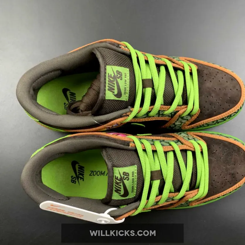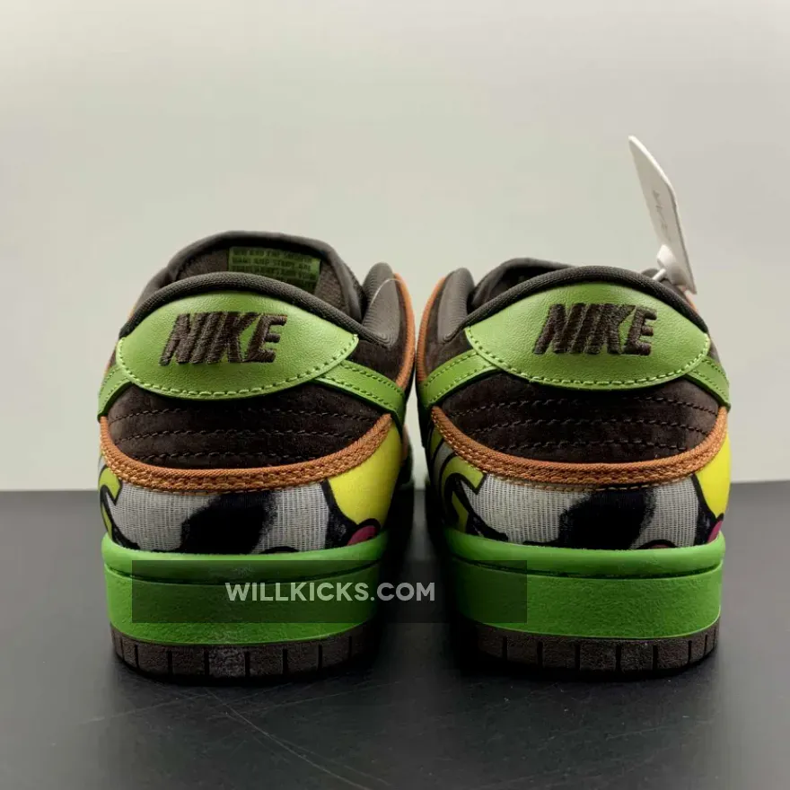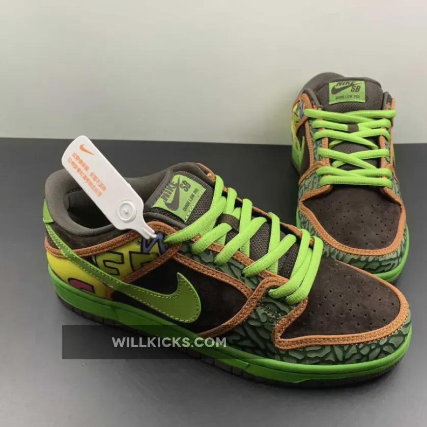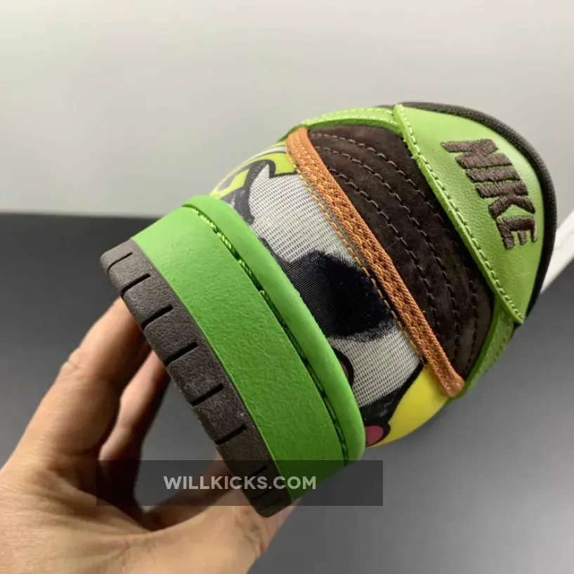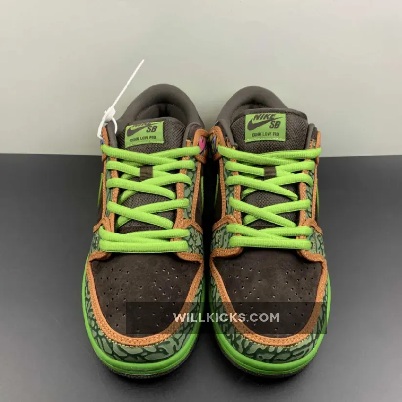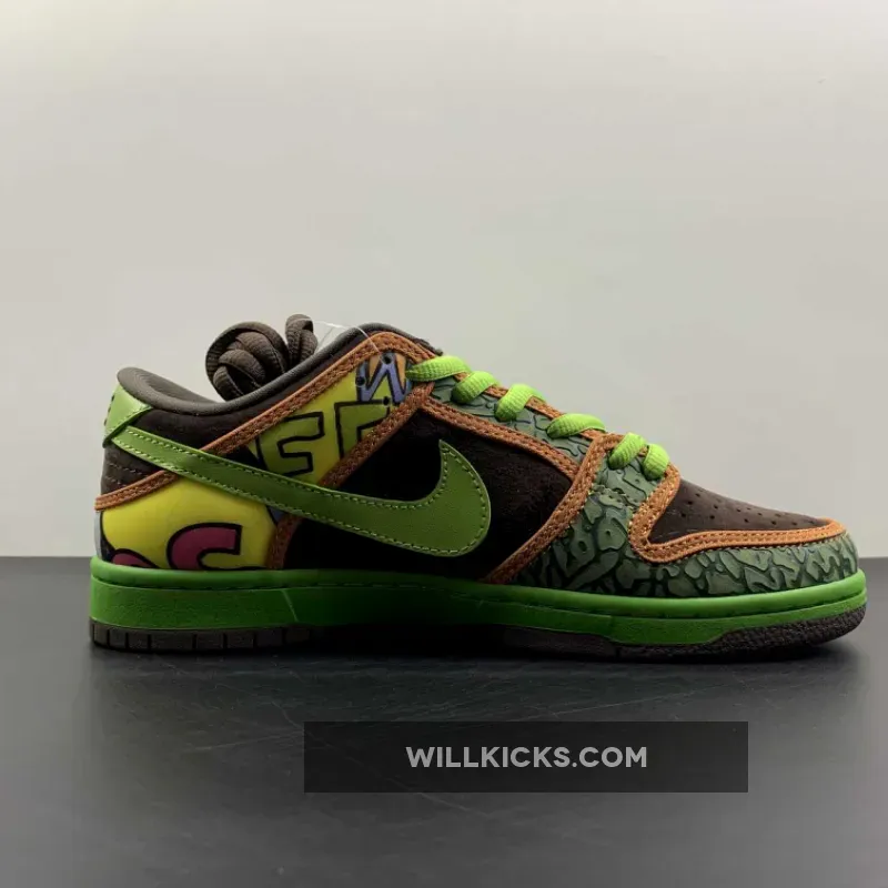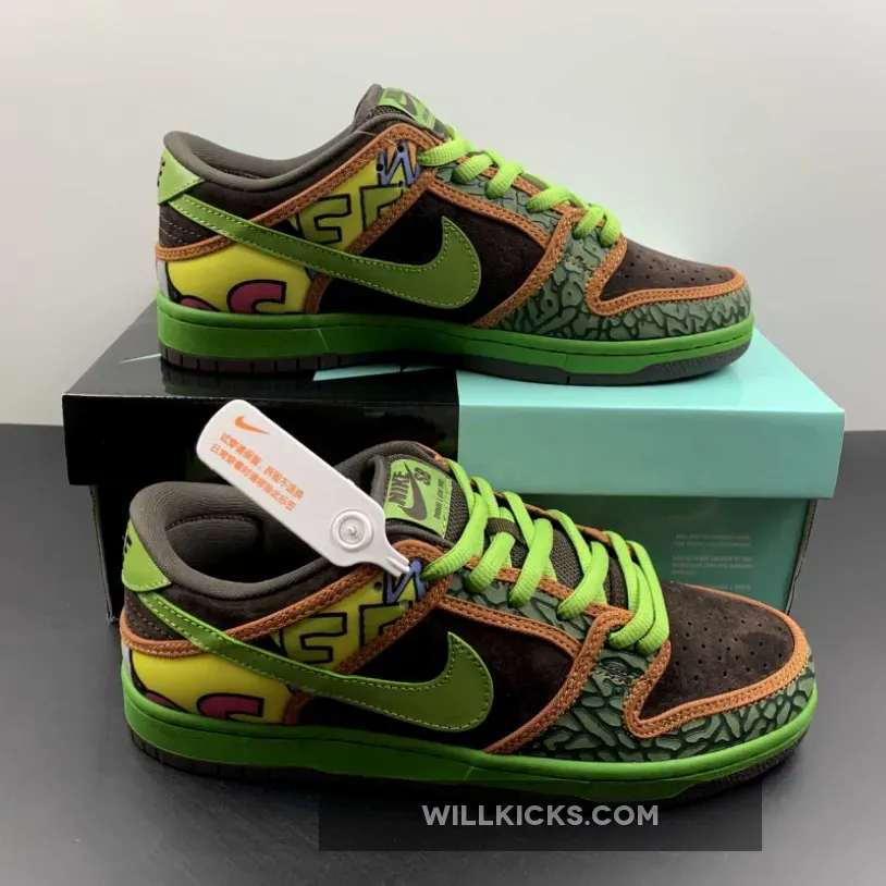 Dressed in a Safari, Altitude Green, and Baroque Brown color scheme. This Nike SB Dunk Low features a Baroque Brown suede upper paired with Altitude Green elephant print and vinyl graphic overlays inspired by De La Soul’s debut album, 3 Feet High and Rising.