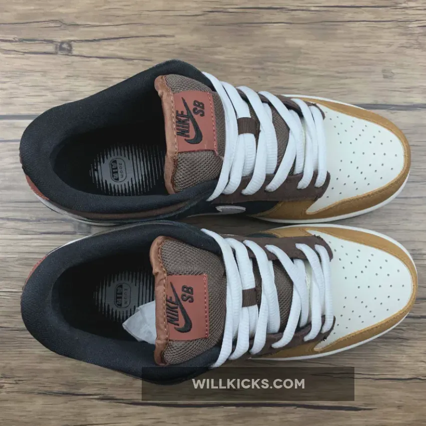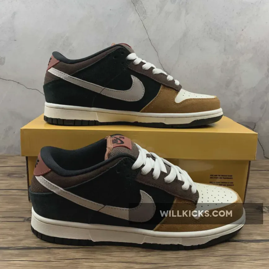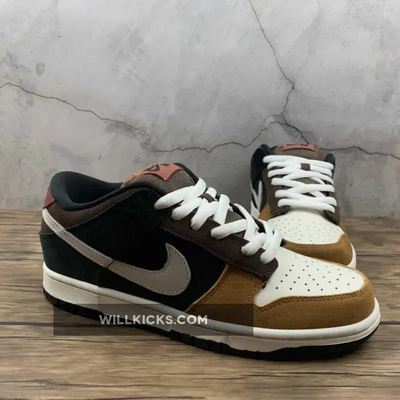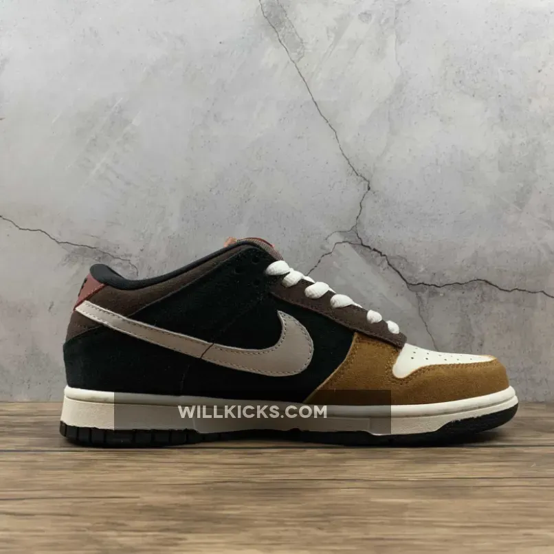 These Dunk Lows were created as a tribute to the late Joe Strummer, guitarist and lead vocalist for legendary British punk band, The Clash. They feature a multi-colored suede and leather upper in a black, metallic zinc, brown, curry and cream color combination.
