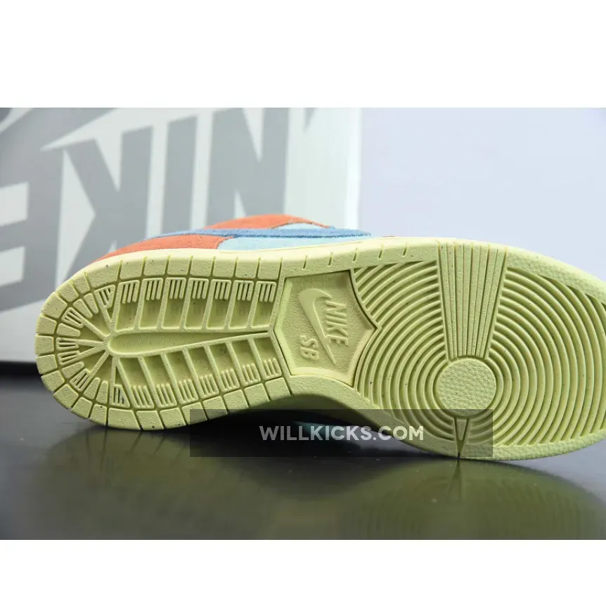 Lastly Blue Nike checks, orange overlays, blue Nike SB branding on the tongues, and a full Lemon rubber sole unit with subtle speckling finish off the look on this Nike SB Dunk Low.
