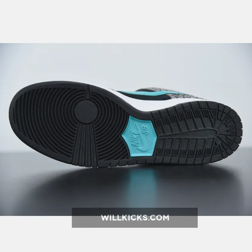This Nike SB Dunk Low is inspired by the iconic atmos x Air Max 1 “Elephant,” as the sneaker borrows the same aesthetic as the runner and features a white leather gracing the toe cap, followed by black for the side panels and ankle portionn. And Air Jordan 3-reminiscent patterns and “Clear Jade” accents – the latter consisting of profile swooshes and branding on the tongue and heel.