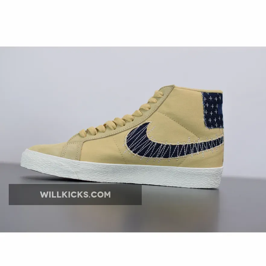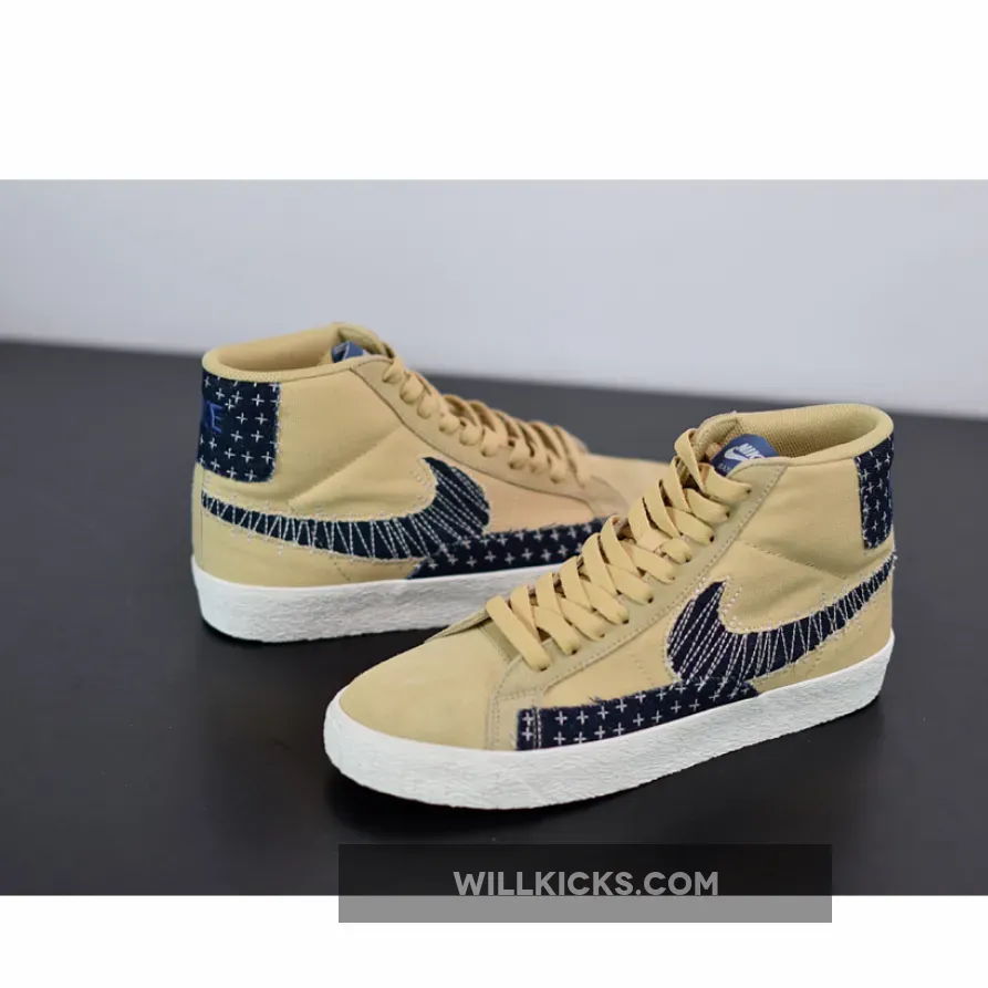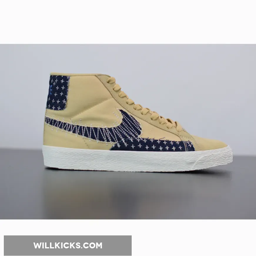Sashiko, which literally translates to “little stabs,” is a form of decorative reinforcement stitching that originated in Japan around 400 years ago. This offering of the Nike SB Blazer Mid features a Sesame base with Sail DIY-style paneling covered in Sashiko-style stitching. A White midsole atop a Gum rubber outsole completes the design.