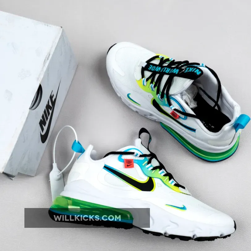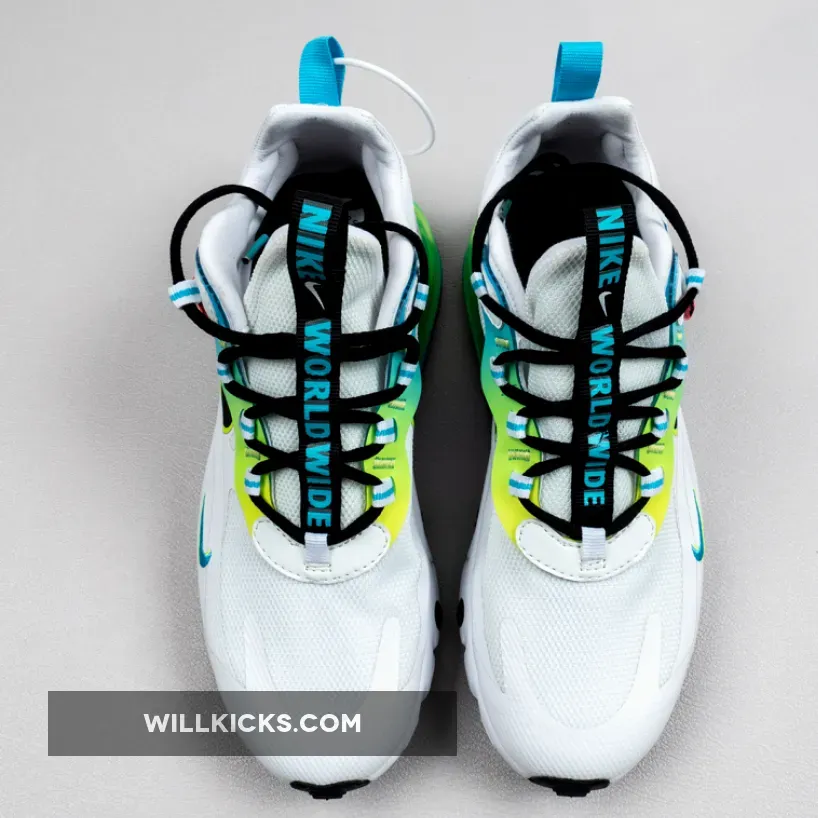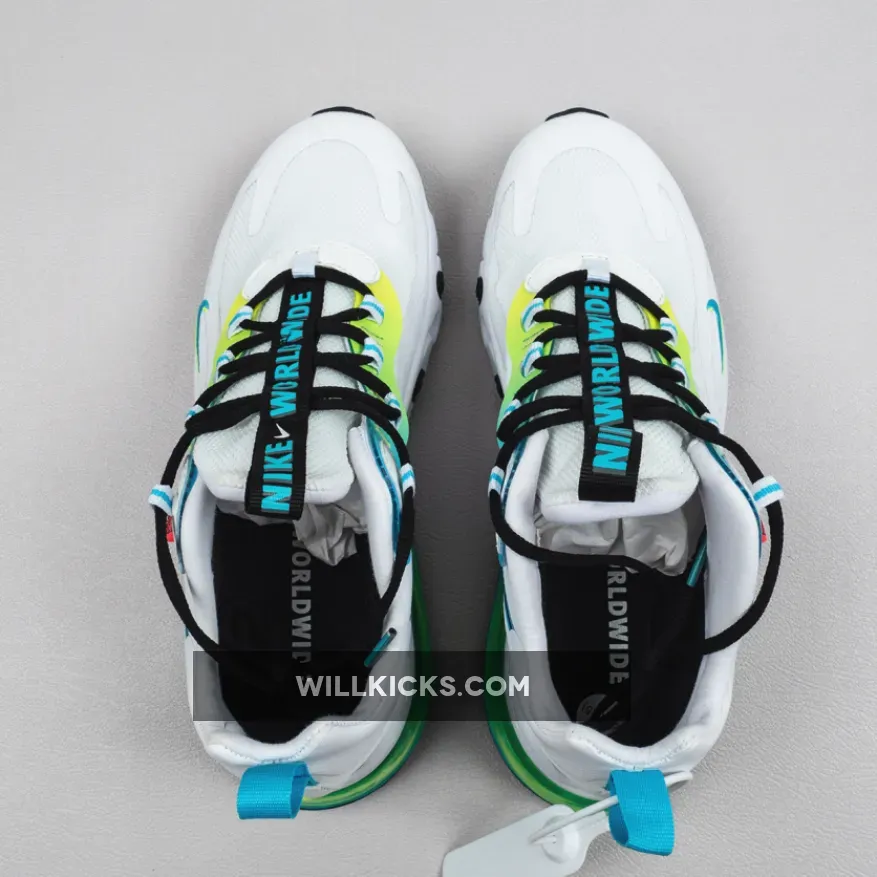 Phenomenal design ?, comfy & stylish. Nike Air Max 270 React “Worldwide” White is a must-have ? for sneakerheads! #Nike #AirMax #Sneakers