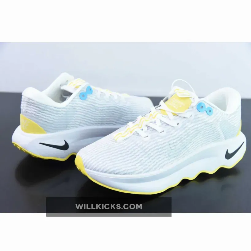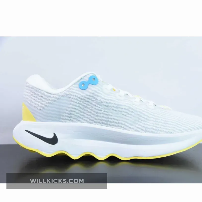 the Nike Motiva sits atop a full-length Cushlon 3.0 midsole. The chunky cushioning solution helps soften impact as feet hit the ground during workouts or errands. ComfortGroove bumps on the outsole also form part of the Motiva’s equation, providing some energy return to help legs feeling less fatigued. Other comfort-driven details include a soft foam waterfall collar and internal half-bootie.