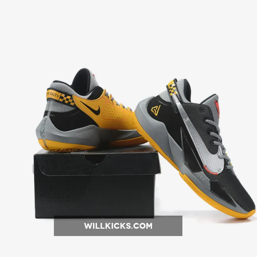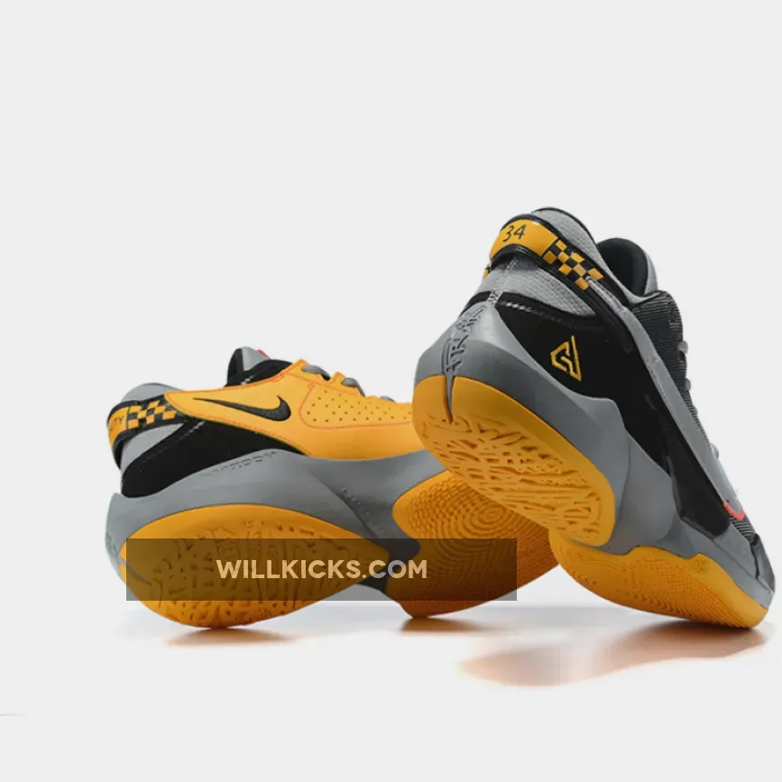 This Nike Zoom Freak 2 features a Black and Metallic Silver color combination. First, Black mesh lands on the lateral side while the medial has Yellow and Red stitching. Next, we have a carbon fiber-like pattern across the Metallic Silver Swoosh on the lateral side while Grey adorns the tongue, ankle, and midsole. We have the taxi checker pattern around the heel with ‘OFF DUTY’ and ’34’ on the left and right heel, respectively. Finally, Red hits the tongue, and insole branding and Yellow covers the outsole to finish the look.