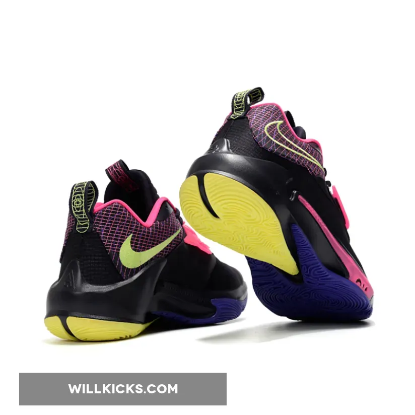 This new offering consists of a flexible textile base in black, although vibrant pink stitches do appear around the collar. The stitching details form a grid pattern reminiscent of computer screen lines. Green backward Swooshes are embroidered over the gridded panels as a touch of branding. The heel pull loop and the pink midfoot strap further embrace computer-inspired graphics that are appropriate for the already-futuristic silhouette. Furthermore, the right shoe’s tongue features a label that reads “{INPUT DATA}” in a purple, techno font. All the aforementioned neon shades meet again on the sole unit, shaping the Zoom Air midsole piece and the tractioned outsole. Overall, this pair serves as yet another thoughtful style by Giannis and Nike that explores motifs and concepts outside of basketball.