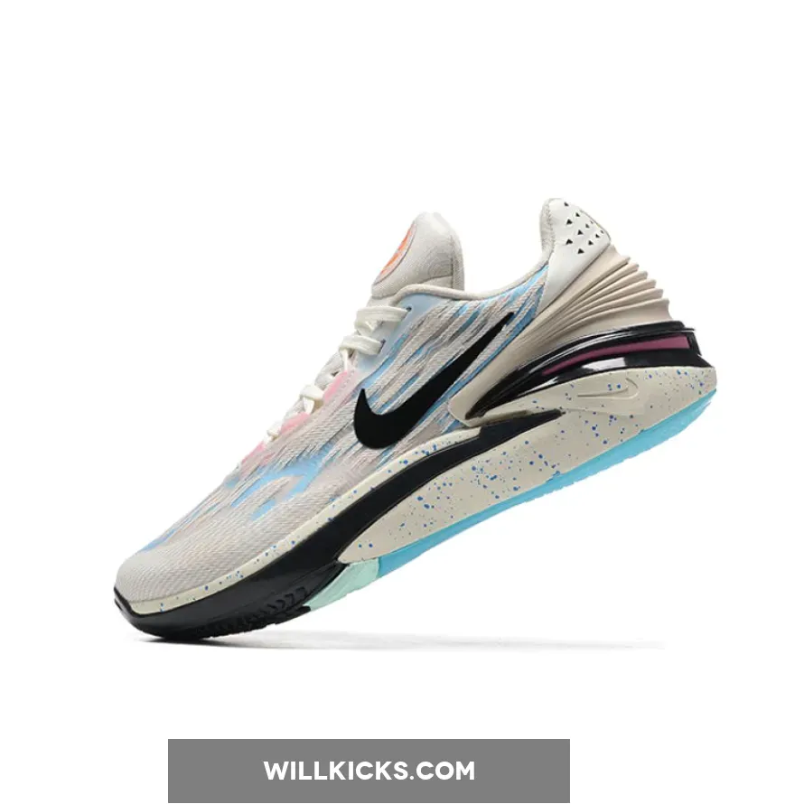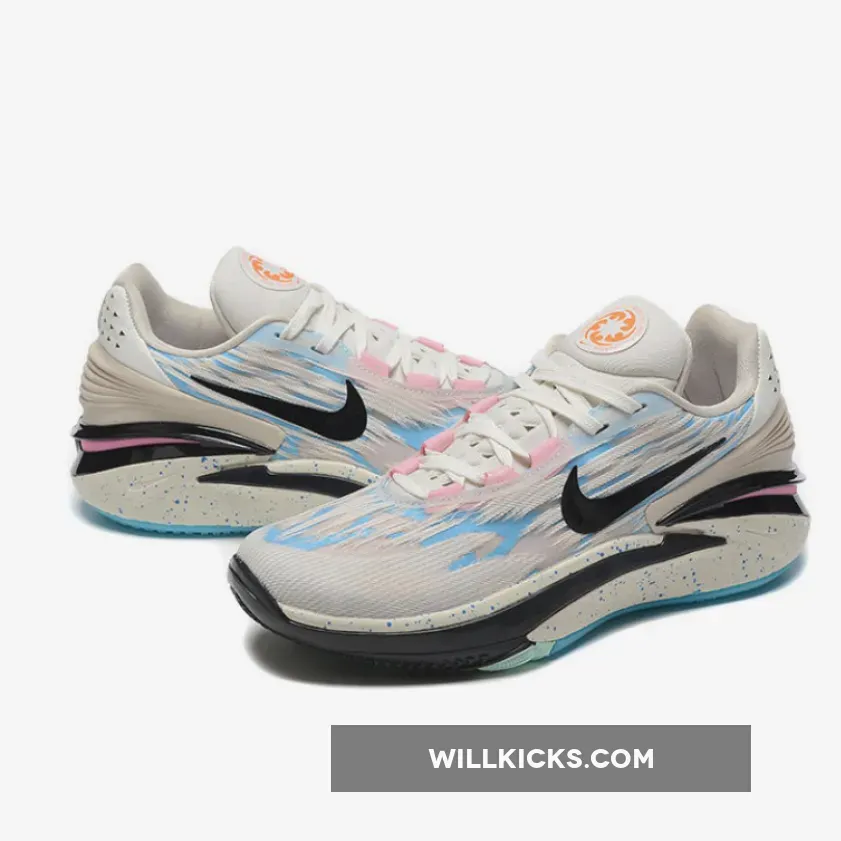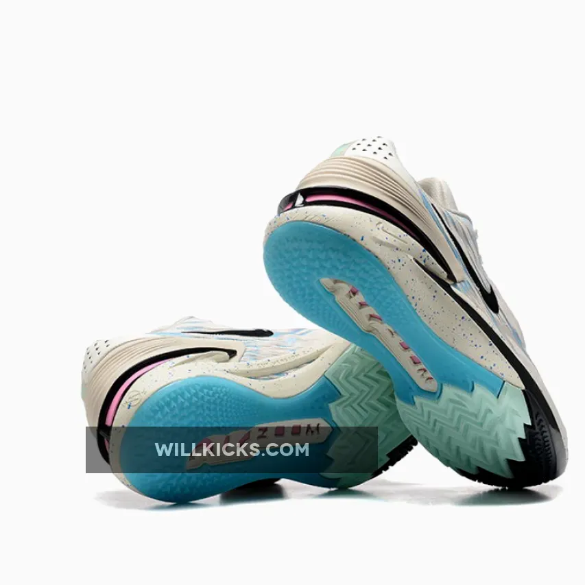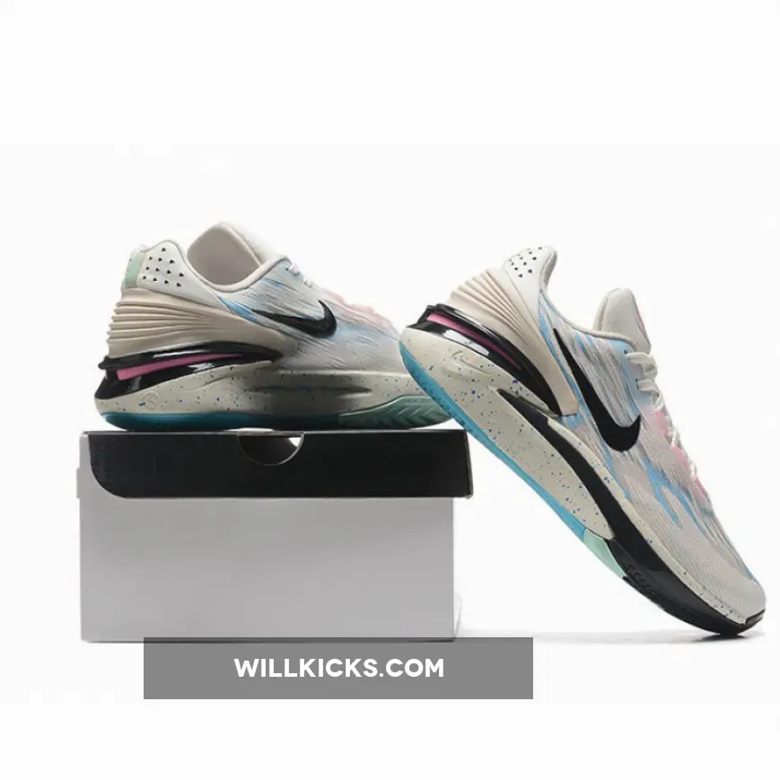 Written across the tongue alongside a thematically complementary graphic, the above text stands above a bright, Spring-appropriate take on the Nike Zoom GT Cut 2. Though it may start with a white base, the pair incorporates many a loud hue, subtly conjuring to mind images of South Beach with its light pinks and blues. These appear along the weave of the upper, the eyelets, and even the sole and heel, taking shine away from the blacked-out finish of the fixtures immediately adjacent.