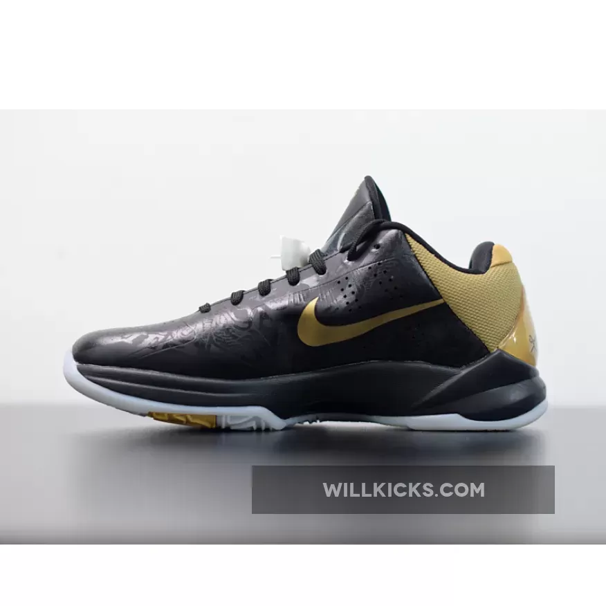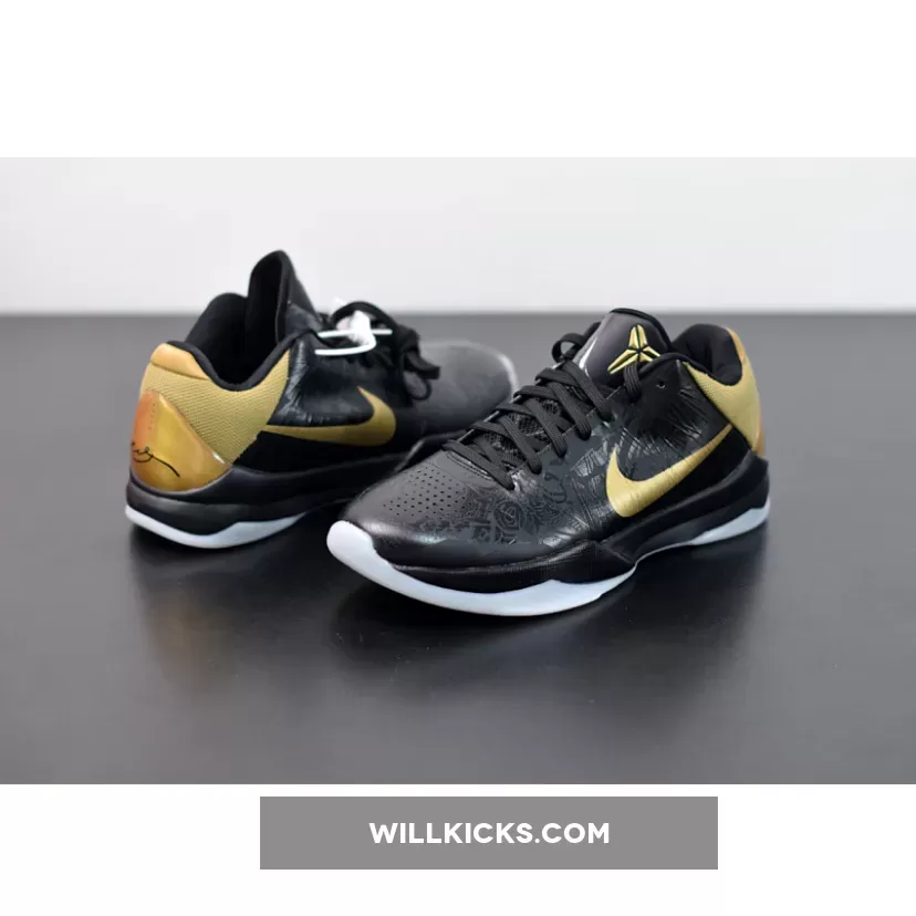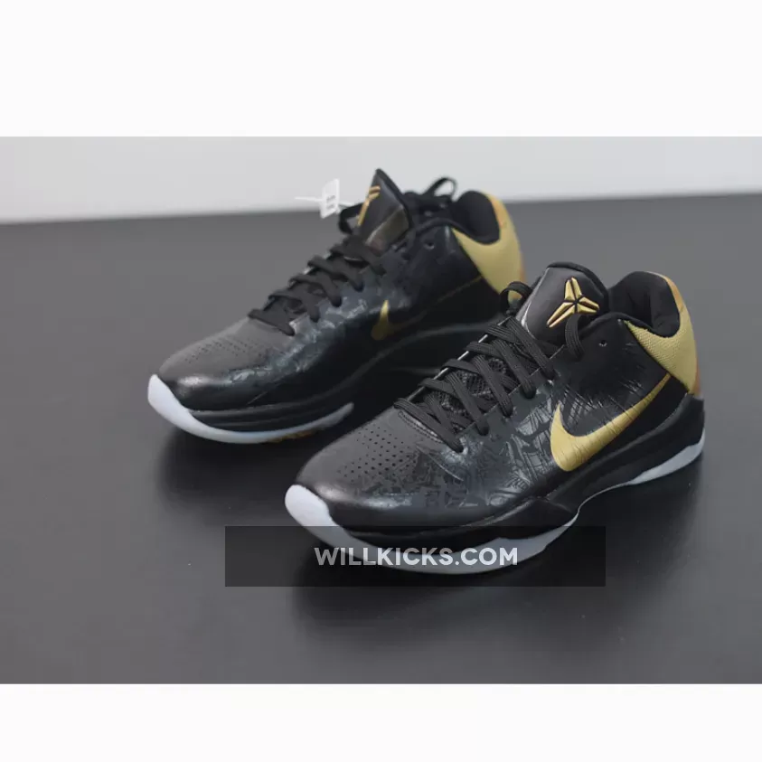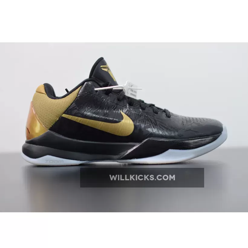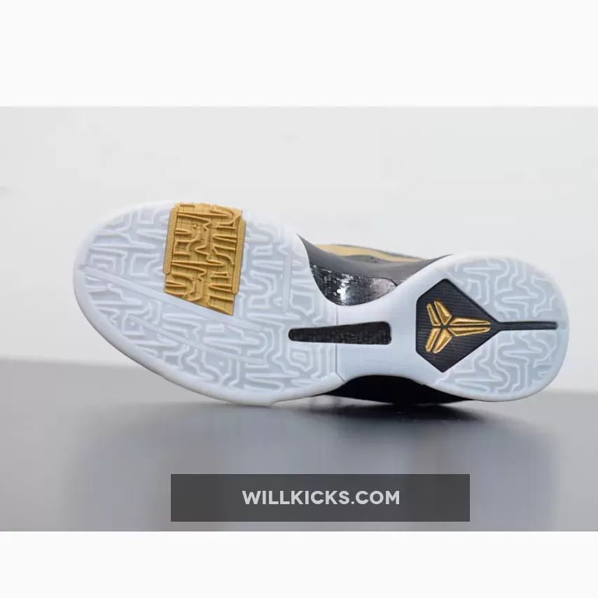 Zoom Kobe 5 ‘Big Stage Away’ puts an allover tribute to Kobe Bryant on the silhouette he wore during the 2010 NBA FInals, which resulted in his fifth NBA title and second Finals MVP. Featuring a black upper supported by Flywire cables, the design gives the nod to milestones from the season, including his points-per-game average and his 25,207th point, which made him the Los Angeles Lakers’ all-time leading scorer. Gold accents emerge on the heel and branding, while Zoom Air provides cushioning underfoot.