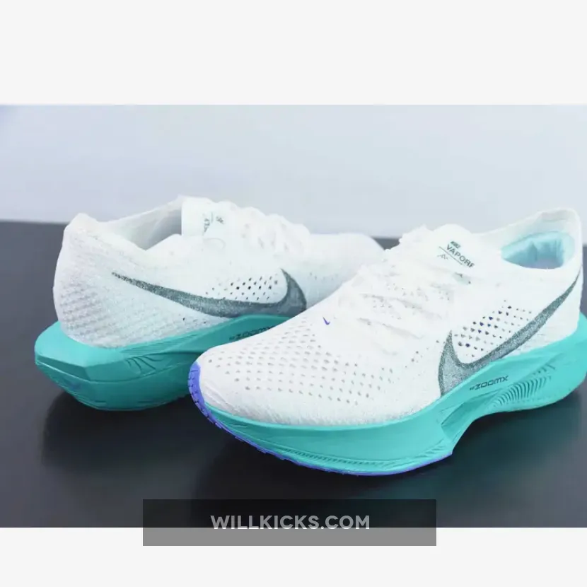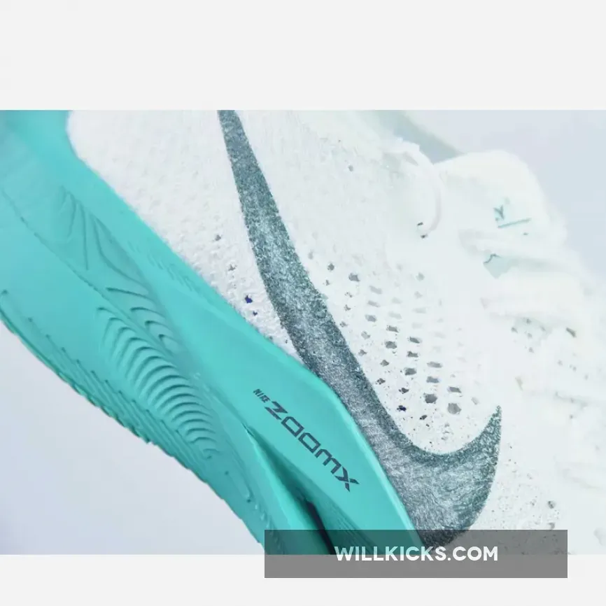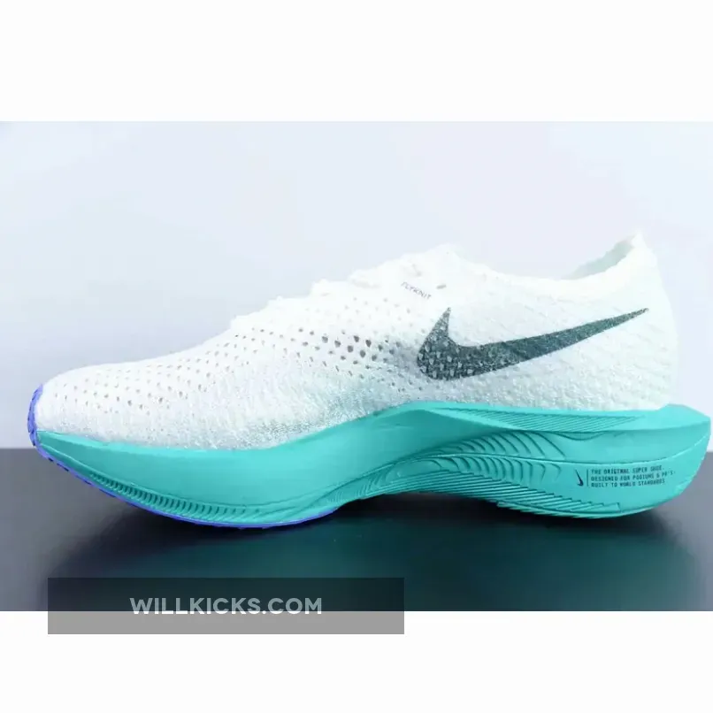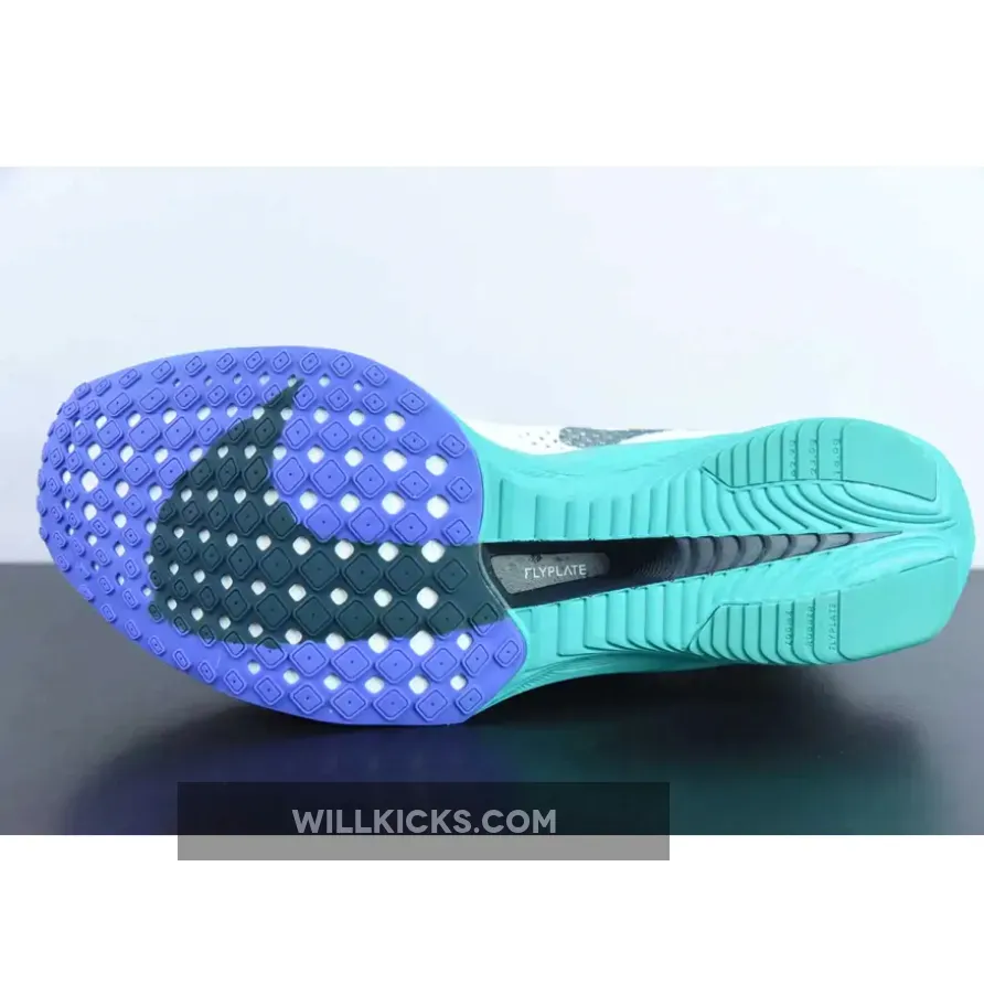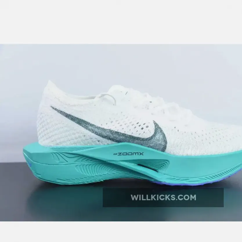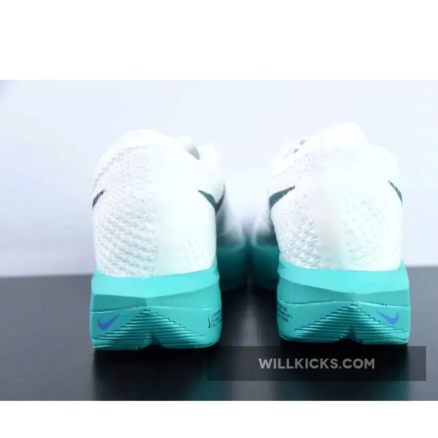 This Nike VaporFly 3 comes dressed in a White, Deep Jungle, Jade Ice, Clear Jade, and Light Ultramarine color combination while a pitch-dark faded teal consumes the mid-foot Swooshes, Flyplate and tongue tab branding. While branding includes Swooshes at the midfoot, micro Swooshes, tongue tags, and printed insoles.