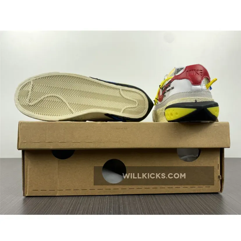 The passing of Virgil Abloh, CEO of the Italian luxury brand, Off-White, has affected so many in the spheres of fashion and athletics. The latest collaborative release between Nike and Off-White, the Off-White x Nike Blazer Low White University Red, pays tribute to the inspiring and legendary designer.This colourful Blazer Low radiates Abloh’s irrepressible charm. See-through port holes are found throughout the upper, their cut-outs partially concealed by the additional bright yellow tubular laces. The heel is wedged to a point, its shape and colour reminiscent of the Nike Terra Humara. Vibrant deep red signature profile Swooshes are on both sides of the shoe with a logo-less blue tag on the lateral side, near the heel, while Nike text branding is embossed on the red heel tab. Off-White’s iconic Helvetica branding can be found on the tongue tab. The shoe also comes with a signature zip-tie tag.
