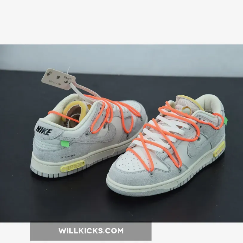 “Overall, I’m really pleased with my purchase. The Off-White x Nike Dunk Low ’11 of 50′ is a stunning sneaker that exceeded my expectations. The premium white leather and grey suede combo looks amazing, and the added details like the zip tie and Helvetica text give it a unique touch. Quality-wise, I’m impressed – the materials feel solid, and the construction seems sturdy. Would definitely recommend to fellow sneakerheads!”