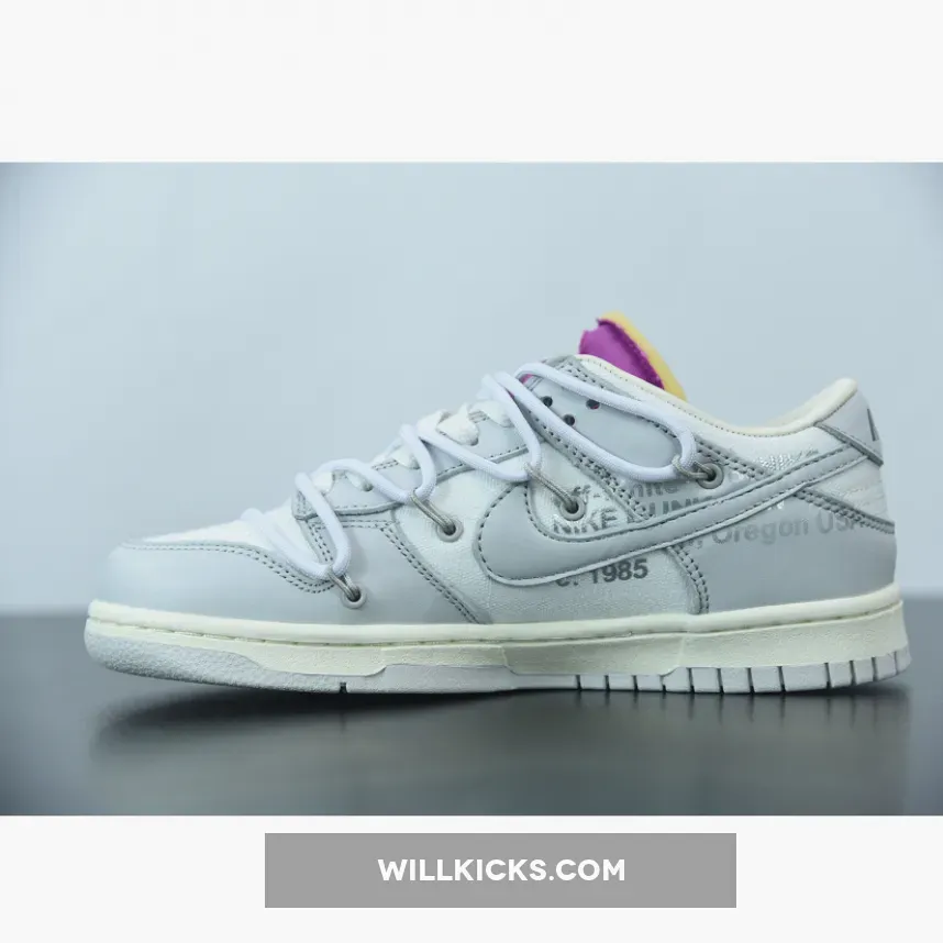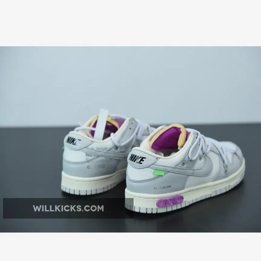 #50 interpolates familiar details and colors from Abloh’s past Nike collaborations with some fresh new details. It’s done up in black and equipped with a metallic silver Swoosh a la the Off-White™ x Nike Air Force 1 “MoMA” from 2018, while also adding the overlaid rope lacing system from past Off-White™ x Nike Dunk Low collaborations and cut-out oval detailing on the tongue that’s borrowed from the Off-White™ x Air Jordan 5.