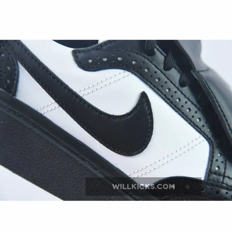 The base is dialed to a crisp white while the leather overlays, Swooshes, thick lace shrouds, bottoms and wing tip toe boxes contrast with a solid black hue.