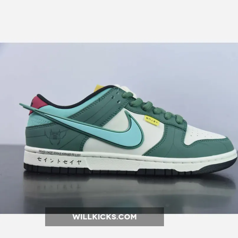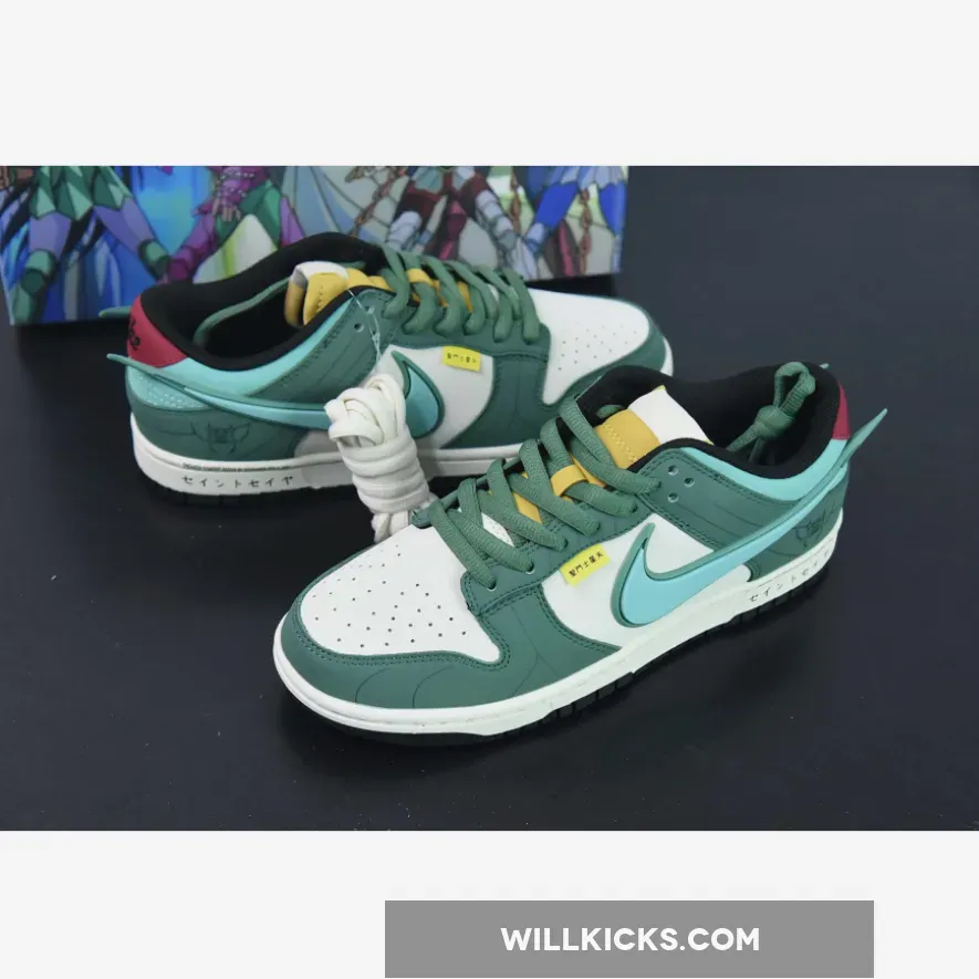 Saint Seiya x Nike Dunk Low Custom White Green – redefine your style with WILLKICKS.COM.