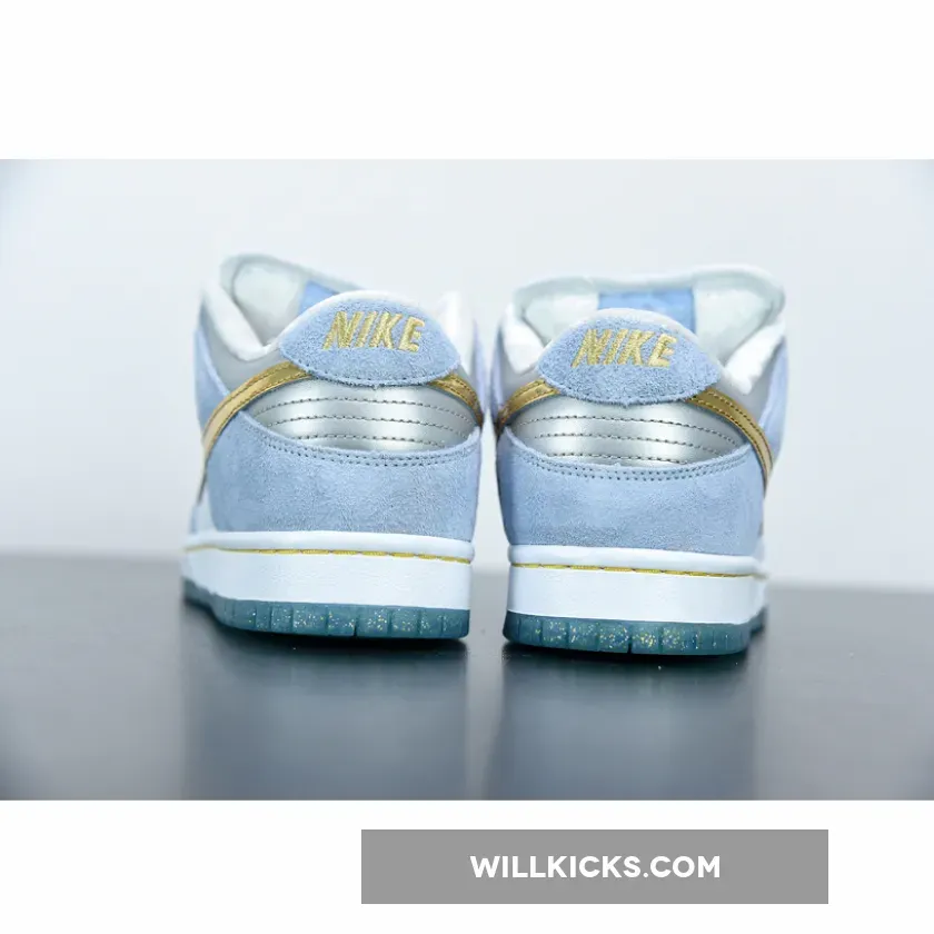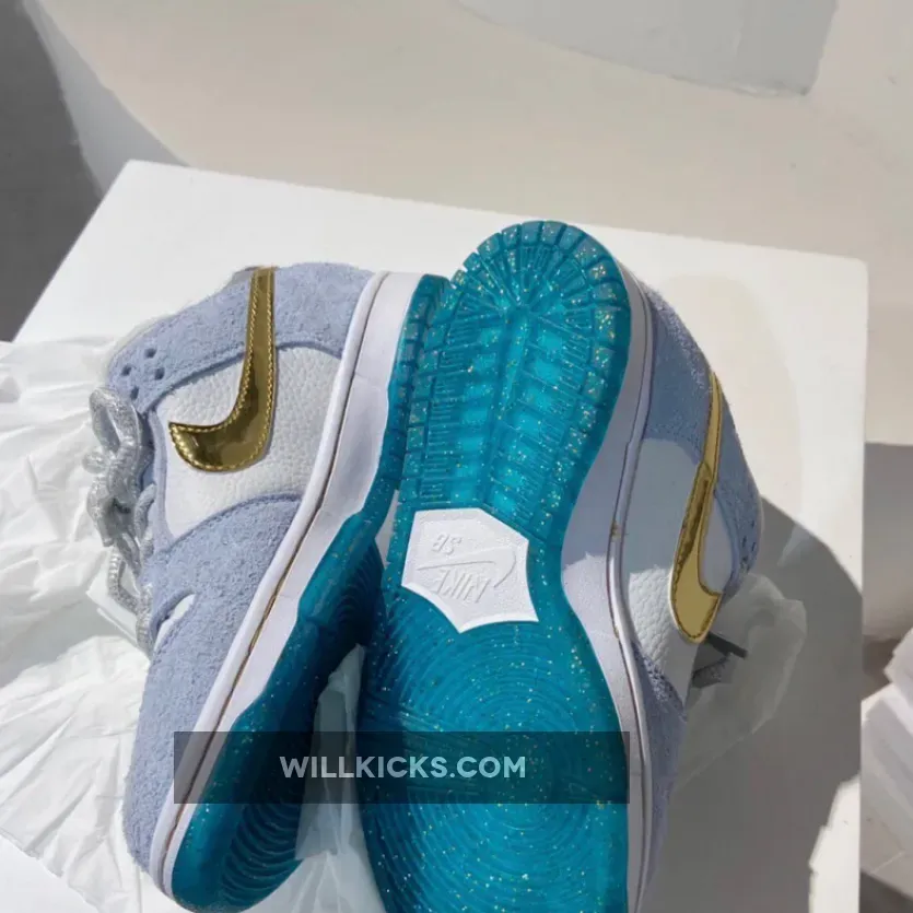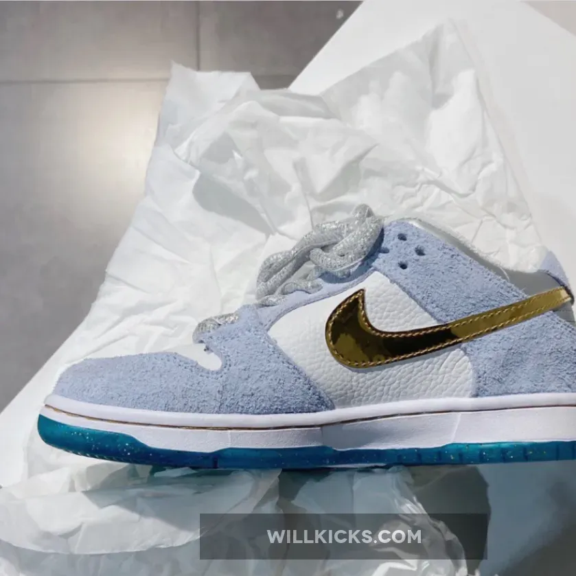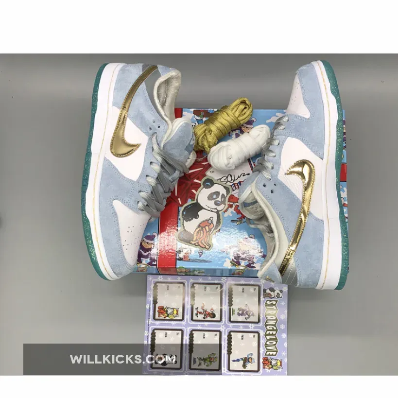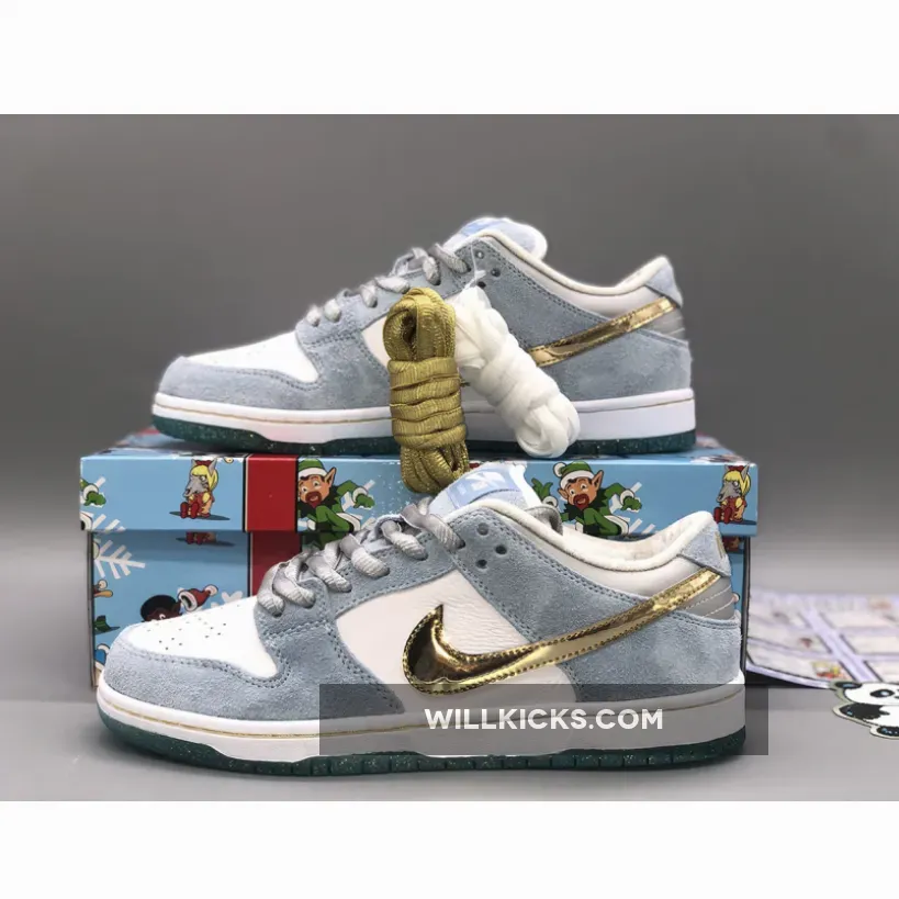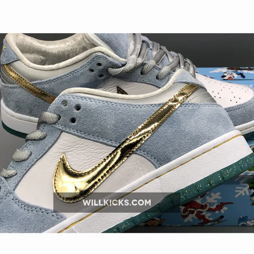 As retro colorways of the Nike Dunk silhouette make huge comebacks and never-ending high heat collaborations go into production, the Sean Cliver x Nike SB Dunk Low is the newest collaborative work of the brand with legendary skateboard artist Sean Cliver who is also the founder of StrangeLove Skateboard.The SB Dunk silhouette is currently experiencing a widespread resurgence across the globe right now, whether it’s the low cut model or high top version, it will sell out in seconds no matter what.Dropping in a new colorway of silver, white, and shades of blue, the colour blocking is subtle but very eye-pleasing. While the upper base is crafted from premium leather in a pristine white hue, baby blue suede overlays adorn the panels across the silhouette, including the heel logo. Elsewhere, shades of silver and metallic gold accentuates branding details across the shoe, prominently the signature gold Swoosh branding on its lateral and medial sides. To complete the look, Nike Skateboarding branding is present on the tongues while the insoles showcase Cliver’s signature artwork for a collaborative touch.Without a doubt, the Sean Cliver Nike SB Dunk Low Holiday Special has become a grail status for a huge number of sneakerheads and skaters. Decked with a retail price of 120 and scheduled to launch at select skate shops and via the Nike SNKRS app, watch this space for updated release info if you eagerly want these on your feet.