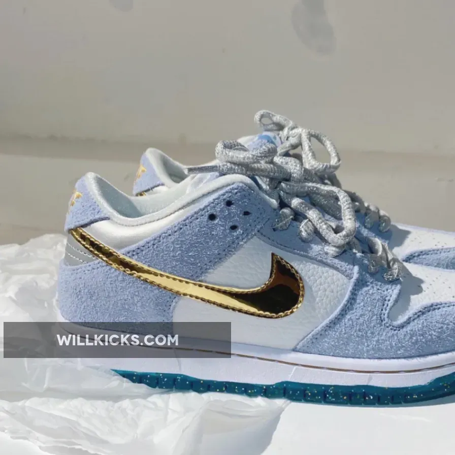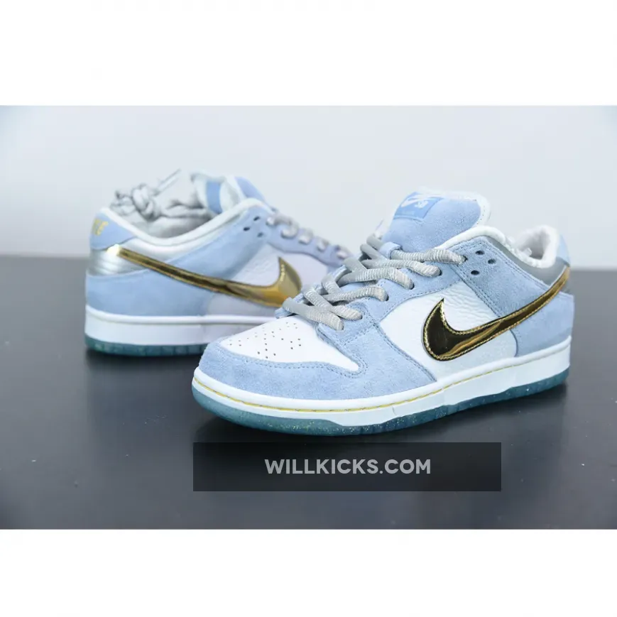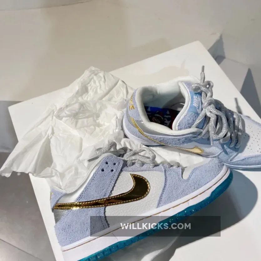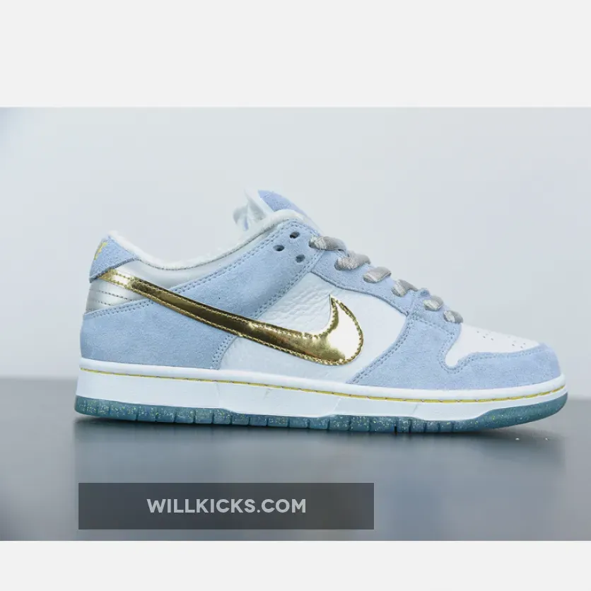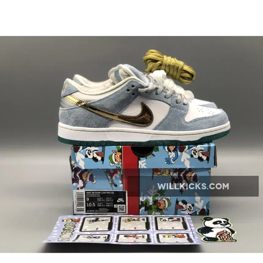 As retro colorways of the Nike Dunk silhouette make huge comebacks and never-ending high heat collaborations go into production, the Sean Cliver x Nike SB Dunk Low is the newest collaborative work of the brand with legendary skateboard artist Sean Cliver who is also the founder of StrangeLove Skateboard.The SB Dunk silhouette is currently experiencing a widespread resurgence across the globe right now, whether it’s the low cut model or high top version, it will sell out in seconds no matter what.Dropping in a new colorway of silver, white, and shades of blue, the colour blocking is subtle but very eye-pleasing. While the upper base is crafted from premium leather in a pristine white hue, baby blue suede overlays adorn the panels across the silhouette, including the heel logo. Elsewhere, shades of silver and metallic gold accentuates branding details across the shoe, prominently the signature gold Swoosh branding on its lateral and medial sides. To complete the look, Nike Skateboarding branding is present on the tongues while the insoles showcase Cliver’s signature artwork for a collaborative touch.Without a doubt, the Sean Cliver Nike SB Dunk Low Holiday Special has become a grail status for a huge number of sneakerheads and skaters. Decked with a retail price of 120 and scheduled to launch at select skate shops and via the Nike SNKRS app, watch this space for updated release info if you eagerly want these on your feet.