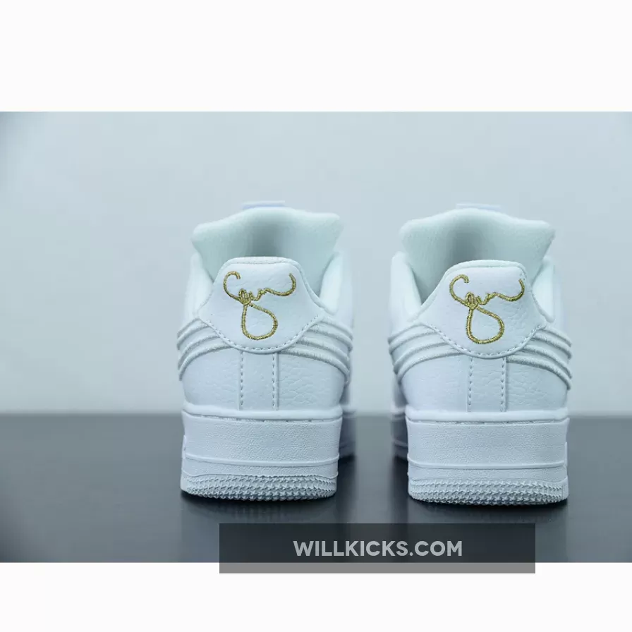 This minimalist low-top is laceless and has a pebbled leather upper in Summit White. The shoe features embroidered double signature Swooshes in white on both the medial and lateral sides. The usual lace system is swapped out for a zipper boasting metallic gold hardware and Nike branding. Serena Williams’ signature in gold adorns the white heel tab and co-branding in white, gold and silver can be seen on the tongue tab. When unzipped, the tongue reveals SWDC’s “10 4 01” which symbolises diversity, inclusivity and the bond between the team and the individual. A crisp white sole unit finishes off the shoe’s design.