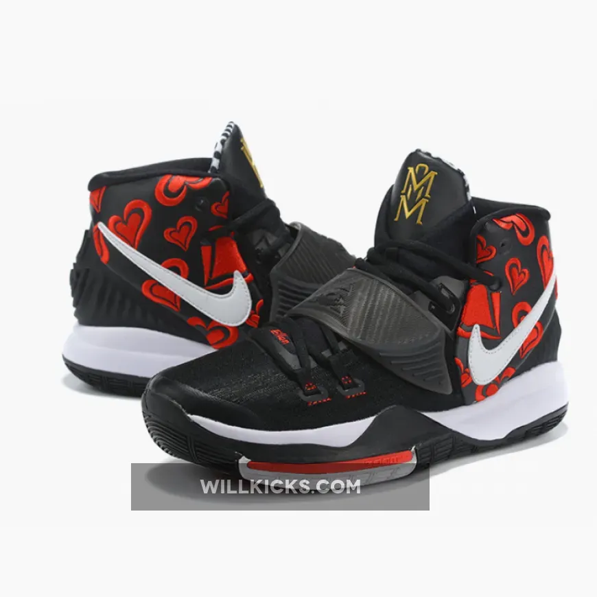 After working on the Kyrie 5 last year, Sneaker Room will once again pay tribute to both Irving and store owner Suraj Kaufman’s late mothers with special “Mom” colorways of the Kyrie 6. The shoes, which will be available in black, cream, and red styles, feature details inspired by Irving’s mother, Elizabeth, such as a polka dot liner to match a shirt she wore in a memorable photo. Kaufman also pays tribute to his mother with accents of gold, her favorite color. Each left shoe is embroidered with hearts, while the right features roses.