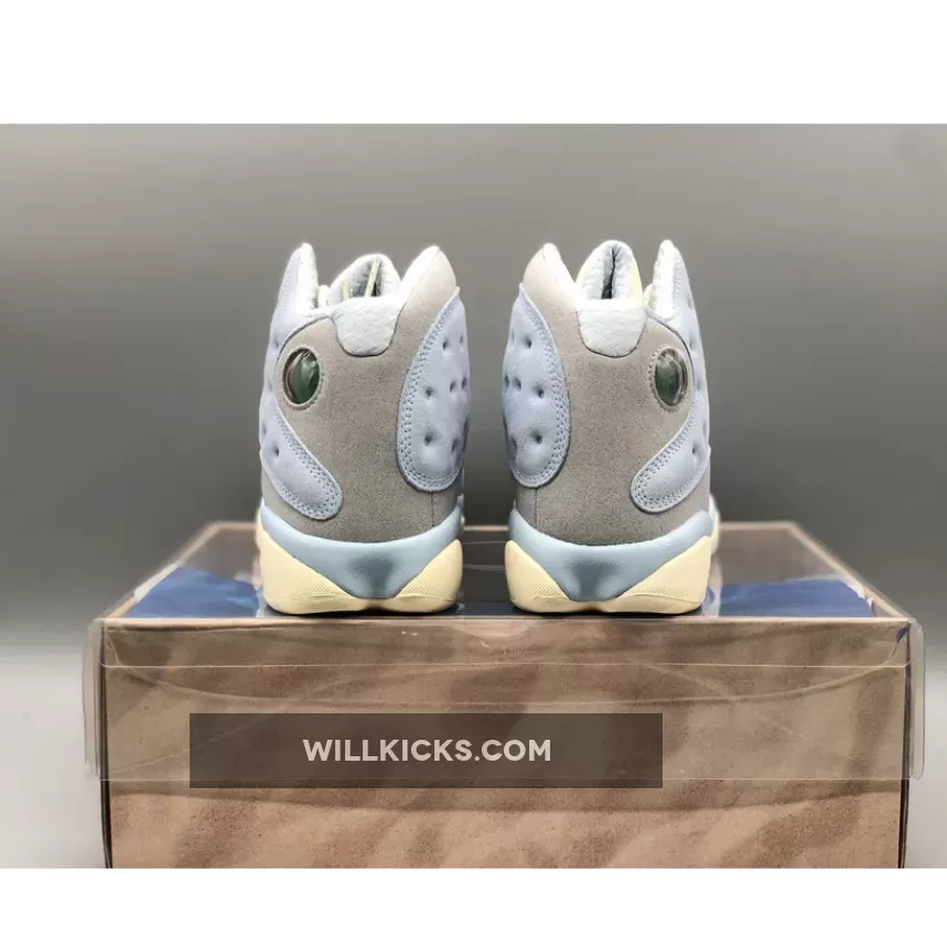 “I’m thoroughly impressed with my SoleFly x Air Jordan 13 Celestine Blue purchase! 👟 The suede and ripstop nylon upper is top-notch quality, and the pastel shades are a perfect blend of subtle elegance. 👌 The reflective laces add a nice touch. 📦 Overall, I’m loving this collab – it’s a must-have for any Jordan fan!” 4.5/5 stars ⭐️⭐️⭐️⭐️