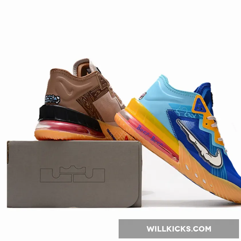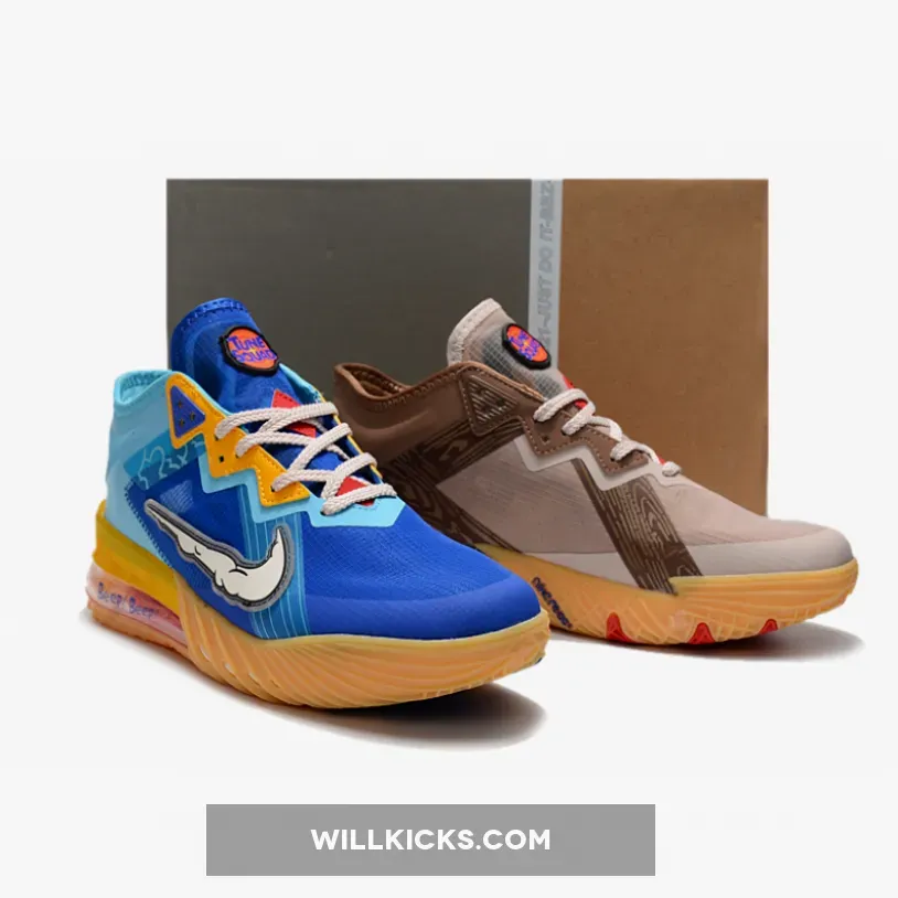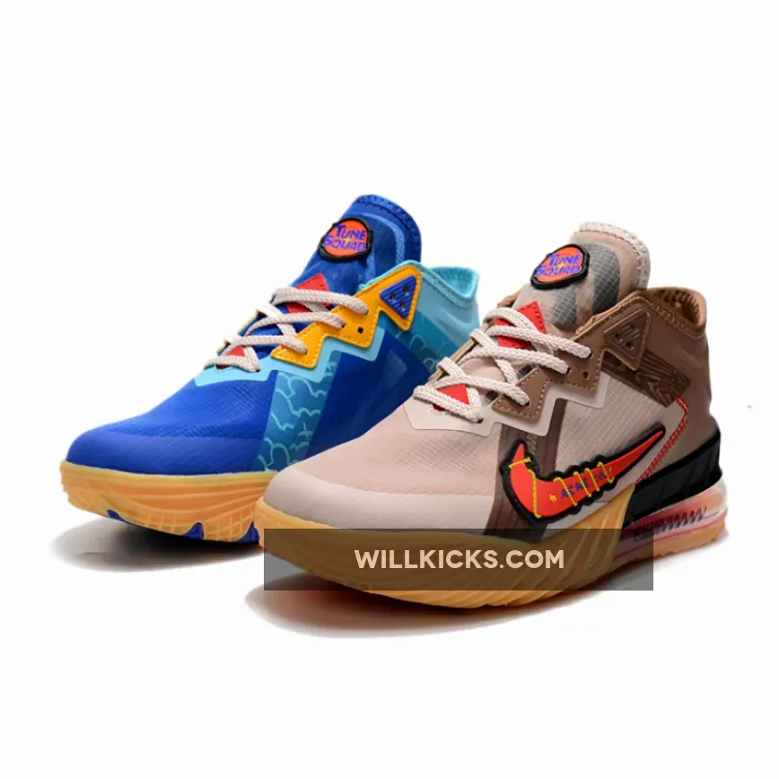 Space Jam Nike LeBron 18 Low “Wile E. vs Roadrunner” ?! Love the mismatched design, nods to the cartoon rivalry. Air bubbles & customization options are sick! ? #SpaceJam #Nike #LeBron #LooneyTunes